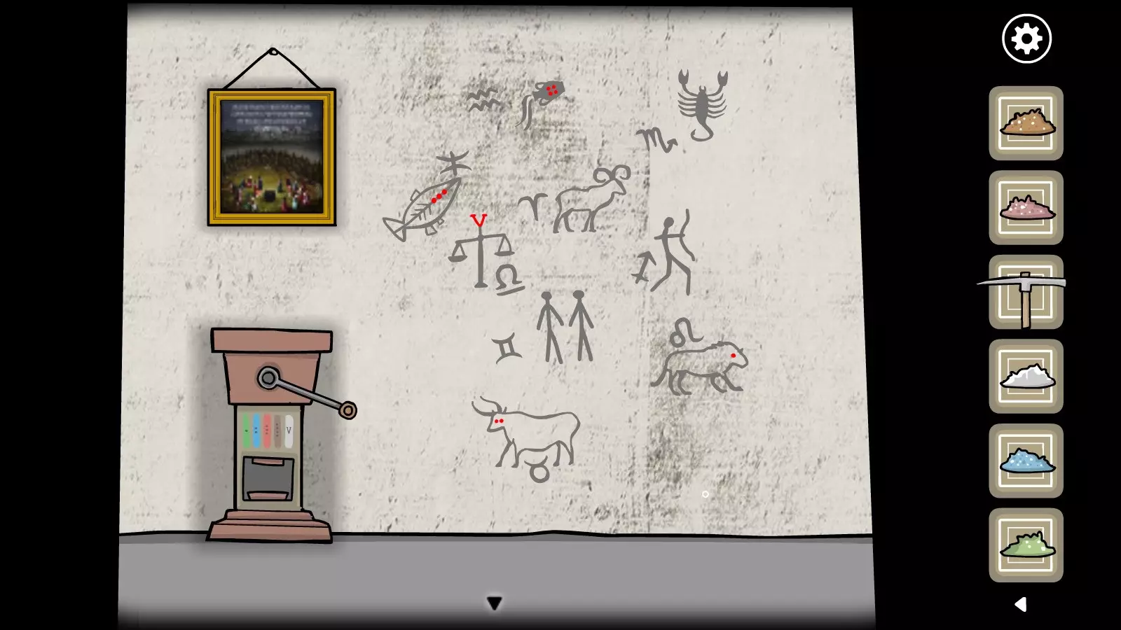 第九个符号 进入墓穴,按照图片所示摆放箭矢。然后检查符号。