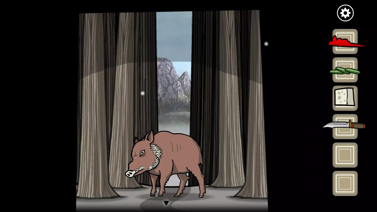 野猪(Wild Boar) 在第三个区域(有岔路的地方)的树林中,有一定几率可以看到野猪的影子。与影子互动。