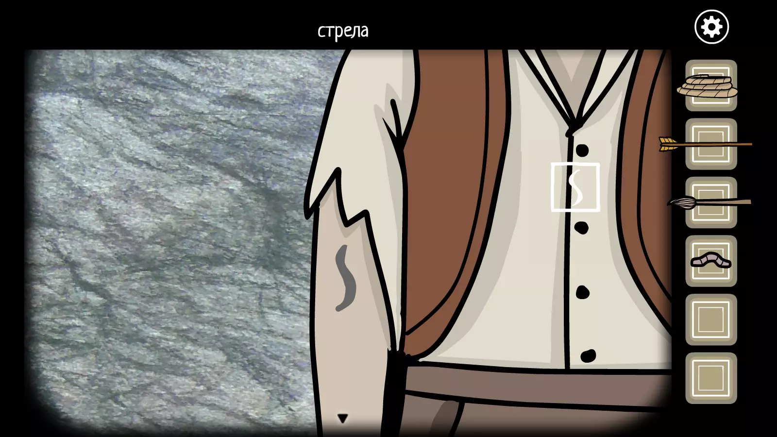 第十个符号 拿到箭后,用叔叔的弓向兄弟的手射两次(需要将弓抬高两个位置),每次射击后都要稍微撕破衬衫的袖子。