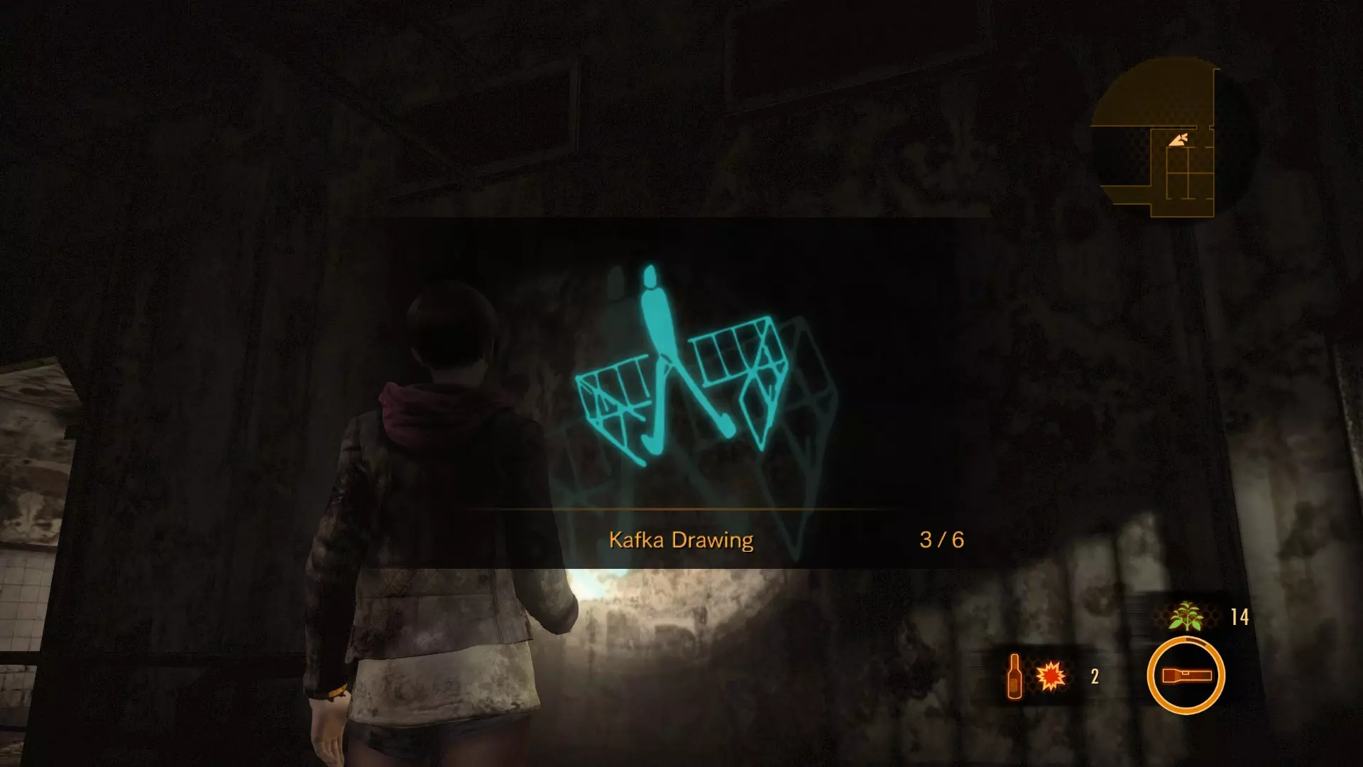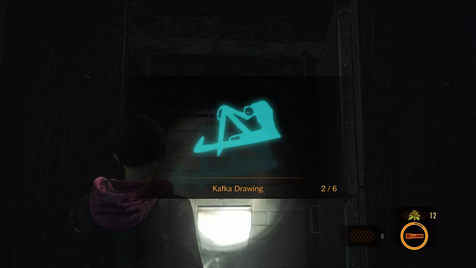 当需要获取两块肝脏中的一块时,你将获得进入加工厂的权限。前往二楼并进入浴室。消灭藏在中间隔间里的受折磨者。第二幅卡夫卡素描位于他所在隔间的右侧。 卡夫卡素描#3