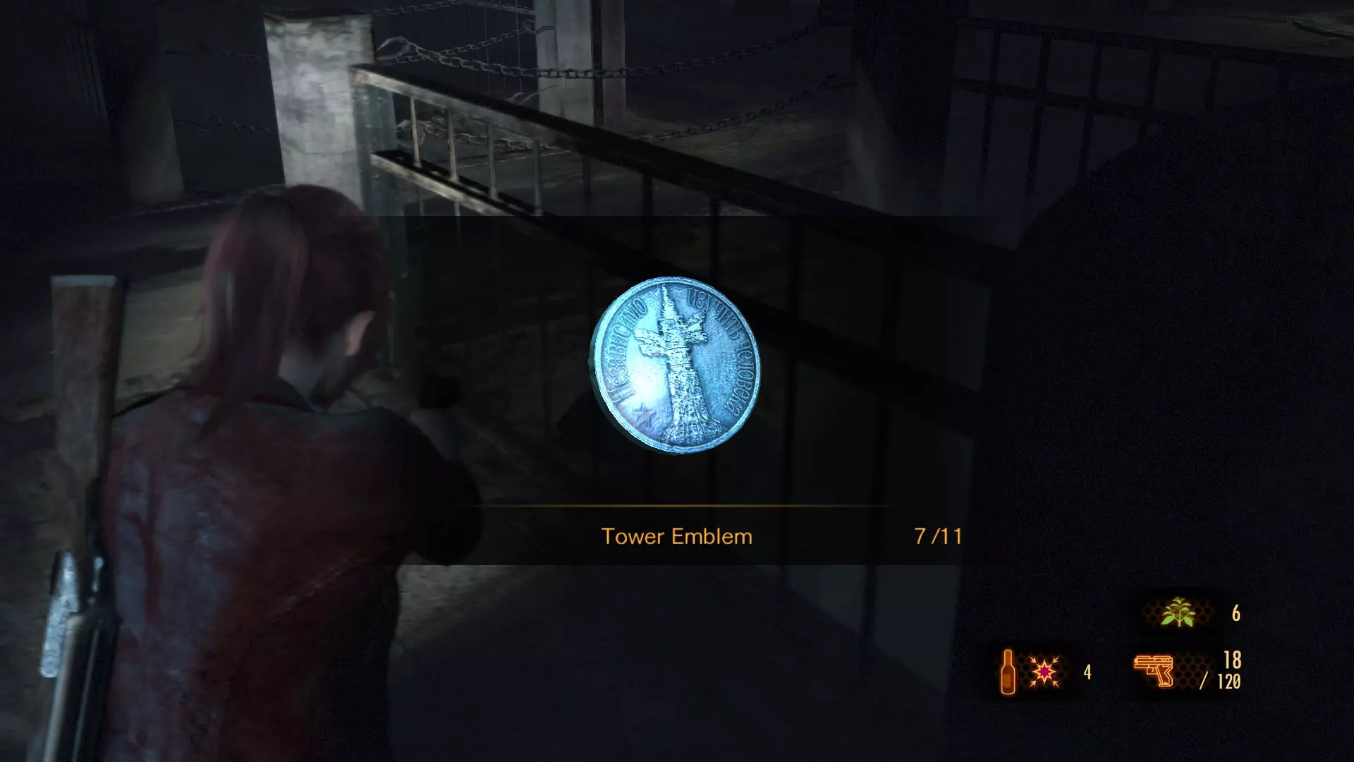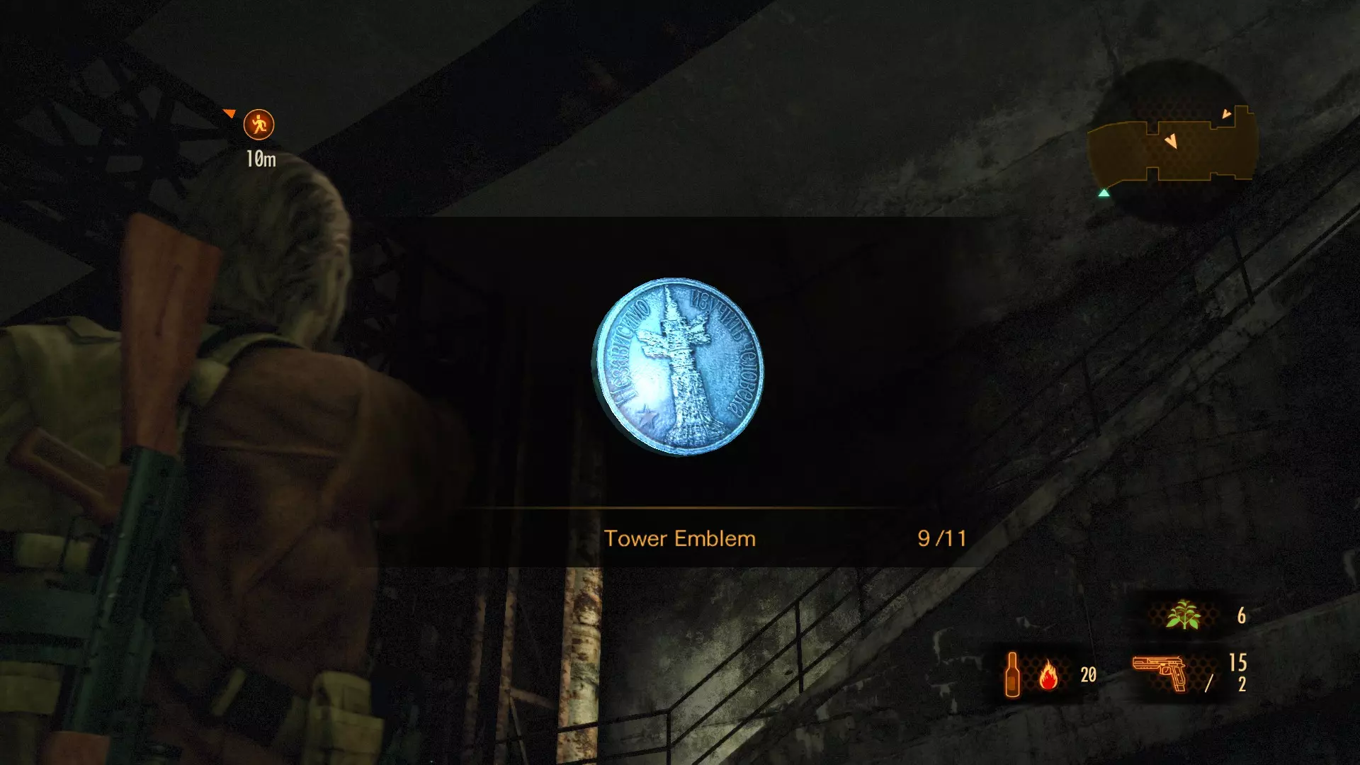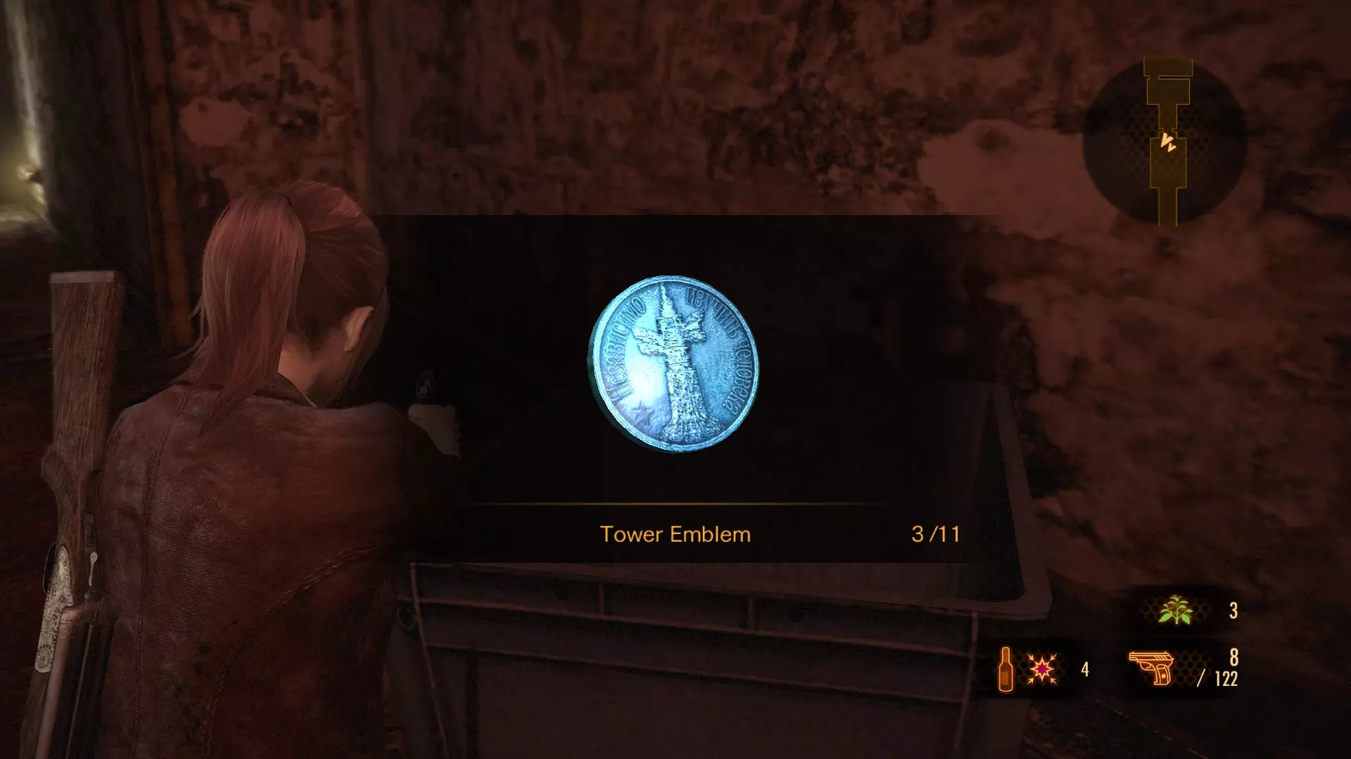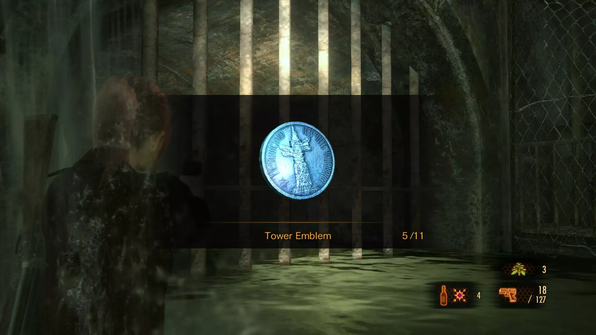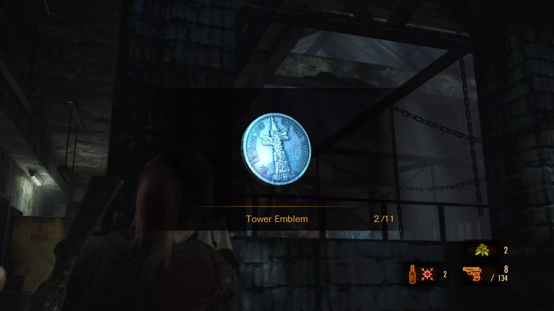 这个塔楼徽章只能在克莱尔打开了火山史莱姆出现位置附近的格栅后才能获得。在本章节开始时逃离亚历克斯·威斯克和 revenant( revenant)后,你需要穿过下水道。你会遇到一个熟悉的入口。如果克莱尔之前打开过格栅,你就能进入干涸的下水道隧道。在机关盒旁边,你会在一个木箱顶部找到第一个塔楼徽章。 塔楼徽章 #2 (9)