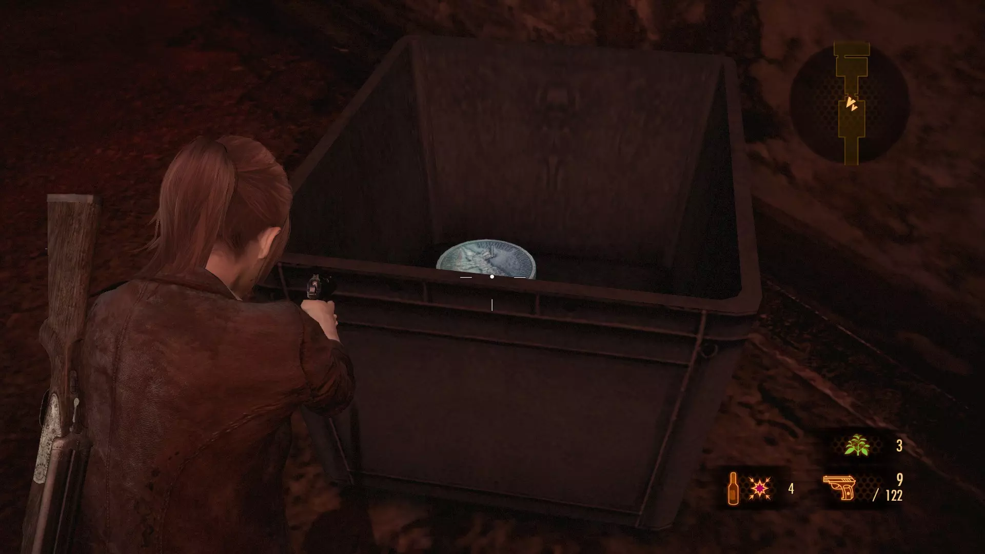从处理厂取回人造眼后,前往屠宰场,在那里你需要使用视网膜扫描仪来打开锁着的门。前往通往有屠宰场钥匙的陷阱房间的走廊。在穿过那扇门之前,注意左边的垃圾桶。第三个塔楼纹章就在垃圾桶里。 塔楼纹章4