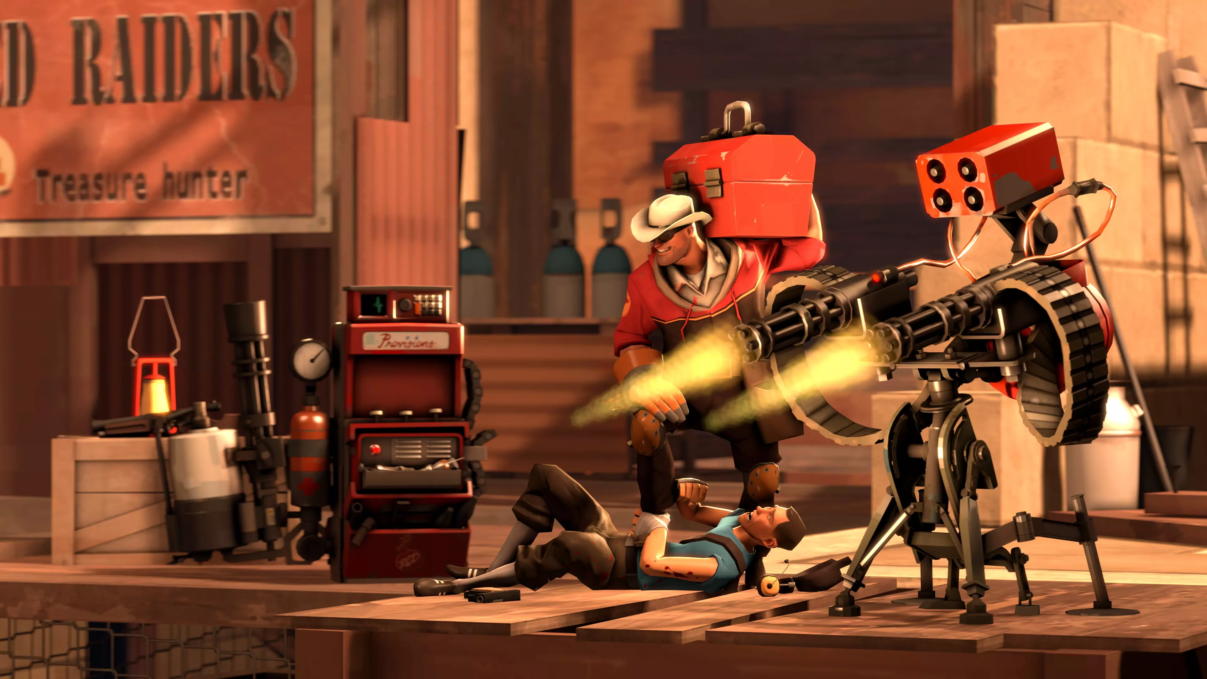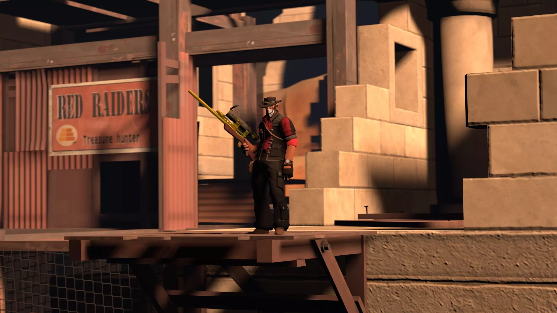 接下来,你只需按照自己的想法照亮场景的其余部分。在我的示例中,遮阳棚下方放置小型血包的区域以及背景都过于昏暗,需要额外打光。我还为狙击手添加了一些额外的轮廓光,让他更加突出。