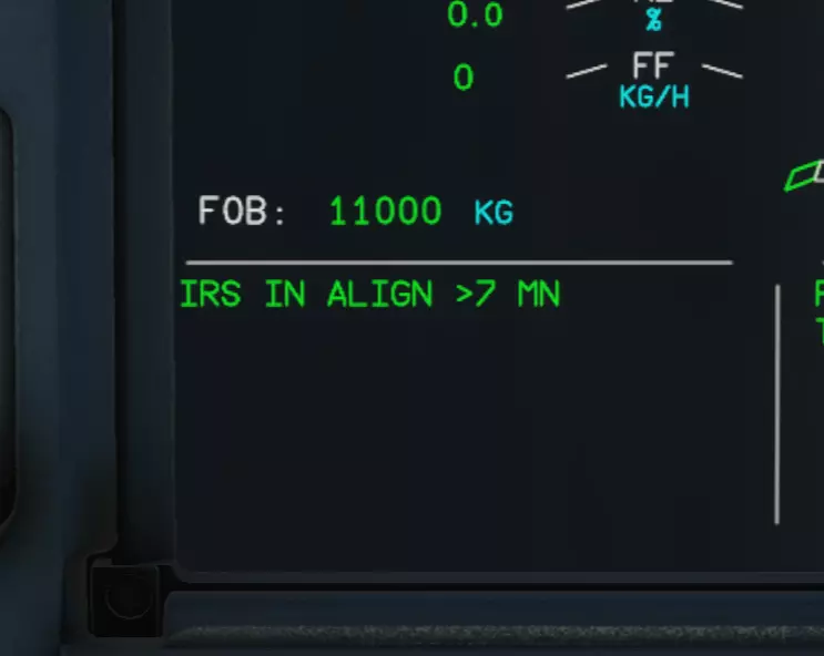 检查当前档位是否正确 现在打开SEC F-PLN,查看后再次打开PERF。 到此,大部分工作已经完成!恭喜你!距离你的起飞只剩几分钟了…… 第三章:启动辅助动力装置 现在到了最有趣的部分!我们的神奇设备没有发动机就无法飞行,毕竟发动机就是用来驱动东西的。 首先,我们需要启动辅助动力装置,它将为我们提供空气和电力。辅助动力装置(APU)是飞机尾部的小型喷气发动机。 让我们转到头顶面板。在这里我们需要进行火警测试。这个测试能让我们了解如果固定装置发生故障,我们能否迅速将其扑灭。 在最顶部寻找标有【FIRE】的面板。