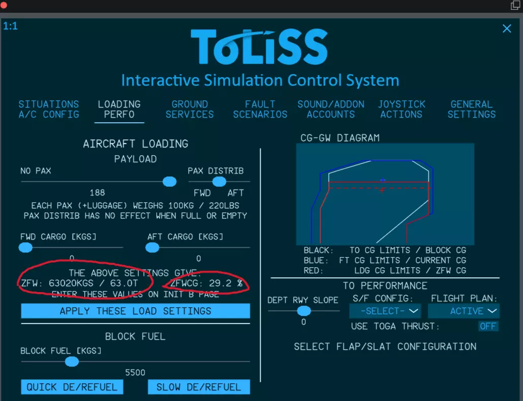 这里我们需要输入ZFW、ZFWCG、Block Fuel的数据。直接填入即可。这些数据可以从插件中获取。