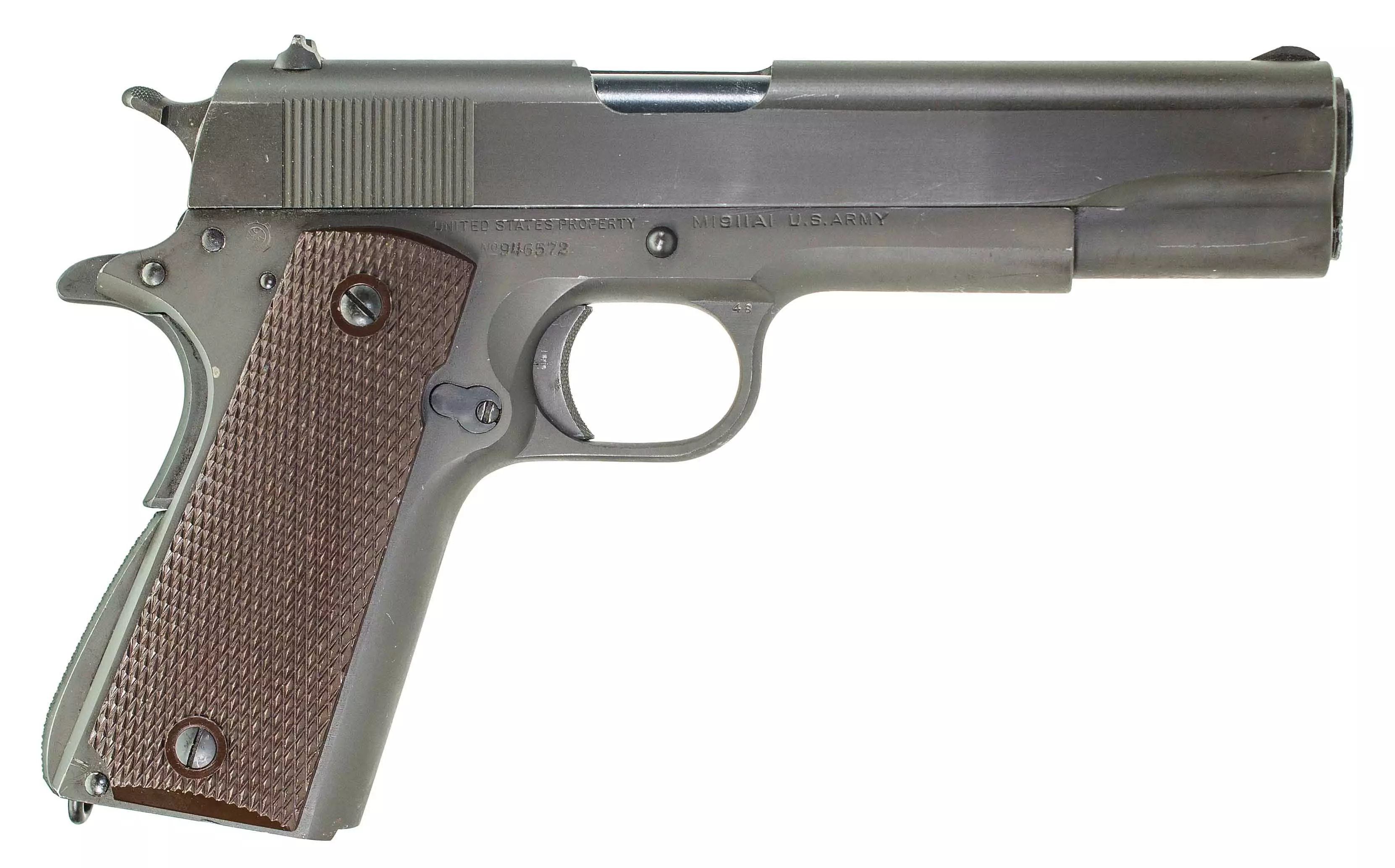 M1911(美国) 这款.45 ACP半自动手枪由约翰·M·勃朗宁设计,采用7发可拆卸盒式弹匣供弹。它是美军装备中唯一一款枪管膛线为左旋而非右旋的武器。该手枪已有百余年历史,至今仍广受欢迎。它是二战时期美国陆军的标志性手枪,深受美国大兵喜爱,英国突击队和特别行动执行局特工也对其青睐有加。尽管可以为这款手枪安装消音器,但由于其采用枪管上升式设计,安装过程会有些 tricky。