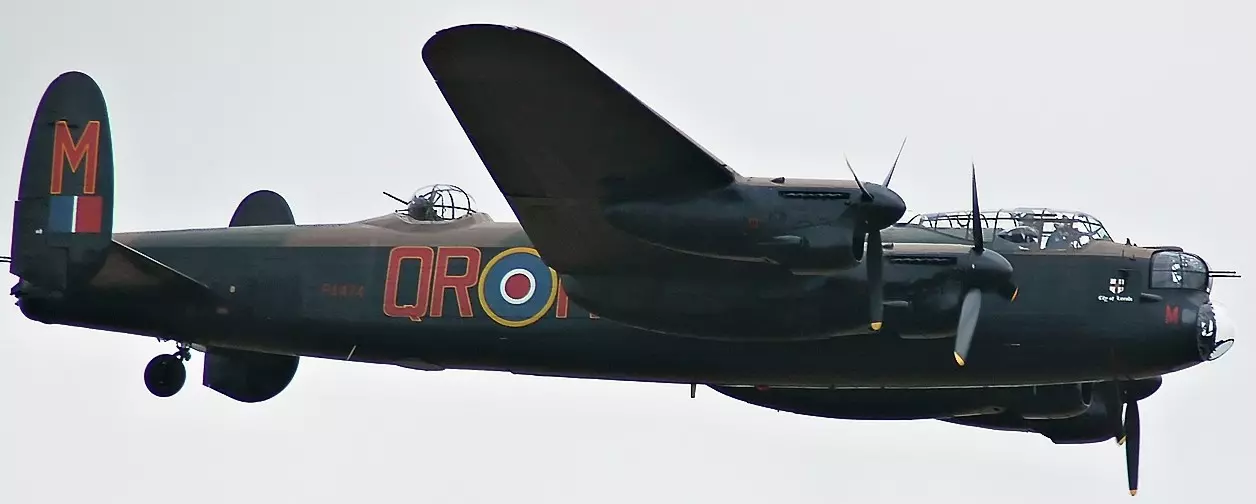 阿芙罗兰卡斯特(英国) 由罗伊·查德威克设计的这款重型轰炸机于1942年投入使用,是英国皇家空军(RAF)使用的三款四引擎轰炸机之一,另外两款分别是汉德利·佩奇哈利法克斯轰炸机和肖特斯特林轰炸机。它拥有一个长而大的弹舱,能够携带英国皇家空军最大型的炸弹,包括4000磅、8000磅和12000磅的重磅炸弹,成为战争中使用最频繁的重型轰炸机之一。和所有英国皇家空军轰炸机一样,兰卡斯特主要执行夜间轰炸任务,同时也执行日间精确轰炸任务,尤其是使用12000磅的“高脚柜”炸弹和22000磅的“大满贯”地震炸弹。兰卡斯特由四台劳斯莱斯梅林发动机提供动力,初期型号每台发动机输出1000马力,战争后期则提升至1800马力。这些发动机与标志性的超级马林喷火战斗机和北美P-51野马战斗机所使用的发动机相同。兰开斯特轰炸机的标准机组人员为七人:飞行员、飞行工程师、投弹手/机头炮塔炮手、领航员、无线电操作员、中上部炮塔炮手和尾部炮塔炮手。