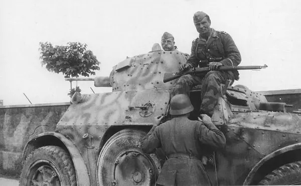 AB 41(Autoblindo 41)(意大利) AB 41是菲亚特-安萨尔多公司制造的一系列意大利装甲车之一。其最初版本(AB 40)于1940年订购,仅少量生产(仅24辆!)。该版本在炮塔上配备两挺8毫米机枪,但很快发现这火力不足。AB 40随后被重新设计为AB 41,除了换装配备20毫米机关炮的新型炮塔外,其他部分与前者相同。几乎所有的AB 40都被改装成了41型。AB 41采用四轮驱动,且所有四个车轮均可转向,不过这一设计也存在一些问题。安装在驱动轮之间的备用轮可以旋转,有助于车辆在复杂地形中行驶,并防止车辆陷入中间高起的困境。AB 41装甲车的乘员为4人,包括车长、炮手和两名驾驶员,一名面向前方,一名面向后方。该车拥有6个前进挡和4个倒挡,最高时速为45英里/小时(70公里/小时),越野性能出色。其正面装甲厚度达15毫米,防护优良,但发动机难以接近,油箱缺乏保护,且炮塔为单人操作。尽管存在这些缺点,它仍被认为是同期最优秀的装甲车之一。AB 41共生产了约550辆。原计划将炮塔升级为47毫米反坦克炮(即AB 43型),但由于1943年9月意大利停战而取消。德国也曾使用过这款车辆,无疑是从意大利人手中缴获的。