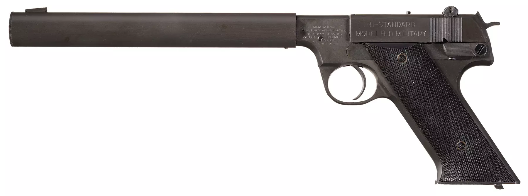 HDM(高标准HD型)(美国) 该枪于1944年专为战略情报局(OSS)设计。它基于广受欢迎的高标准手枪改进而来,配备一体式消音器,采用10发可拆卸盒式弹匣供弹,发射.22口径长步枪弹(.22LR)。尽管在游戏中,它的伤害能力被设定为与其他所有手枪大致相同,但实际上,.22LR是威力最小的手枪弹,理应被视为伤害最低的手枪弹种。在现实中,除了威尔洛德消音手枪外,它比其他消音手枪都要安静,但在游戏里,它是另一款唯一配备一体式消音器的手枪。 我曾试射过几把这种手枪,尽管它们年代久远,但确实非常安静,而且至少在25米范围内精度相当不错。这真是一件精妙的作品。