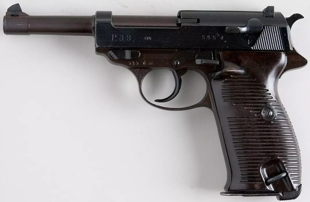 陆军手枪P38(瓦尔特P38)(德国) 卡尔·瓦尔特公司的9毫米帕拉贝鲁姆手枪于1938年被德国陆军采用,但直到1940年才开始全面生产。该枪采用8发可拆卸盒式弹匣供弹,弹匣释放按钮位于握把底部。它是第一款采用枪管短后坐式闭锁和双动/单动扳机的半自动手枪。这意味着首次扣动扳机时为行程较长、力度较大的双动模式,而后续每次扣动扳机则为单动模式,因为每发射击后扳机都会自动待击。瓦尔特之前的PP和PPK手枪同样采用双动/单动扳机,但由于使用威力较小的弹药(.380自动或.32 ACP),因此采用的是自由枪机式设计。尽管这种类型的扳机如今非常流行,但P38是最早的一款。在游戏中,这应该是德国军官最常携带的手枪。