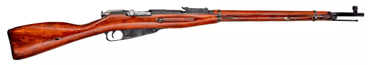 莫辛-纳甘M91/30步枪(莫辛步枪)(苏联) 莫辛步枪是一款采用旋转后拉式枪机的步枪,发射7.62×54R毫米弹药,通过内置弹匣供弹,容弹量为5发。自1891年问世以来,它成为历史上量产最多的军用旋转后拉式步枪之一。谢尔盖·叶夫根尼耶维奇·莫辛上尉(后晋升为少将)是该步枪的主要设计者。纳甘也声称拥有该设计的所有权,并且作为平民,他可以申请专利,而莫辛上尉由于在俄罗斯帝国陆军服役,无法申请专利。众所周知,纳甘抄袭了莫辛的部分设计,因此俄罗斯人称其为“莫辛步枪”,而在西方,它才被称为莫辛-纳甘。二战初期,莫辛-纳甘1891/30步枪是苏联军队的制式武器,而苏联军队是历史上规模最大的动员军队。 自1932年起,狙击步枪开始生产,最初配备德国制造的瞄准镜座和瞄准镜,后来采用俄罗斯自主设计。从1942年起,该枪配备3.5倍PU固定焦距瞄准镜。瓦西里·扎伊采夫(225次确认击杀)、柳德米拉·帕夫利琴科(309次确认击杀)、伊万·西多连科(500次确认击杀)和罗扎·沙尼娜(59次确认击杀)都曾使用过这款步枪。其早期型号M28/30步枪被芬兰狙击手西蒙·海耶使用,他在冬季战争中确认击杀505名苏联士兵,且仅使用机械瞄具便达成这一战绩。 冲锋枪