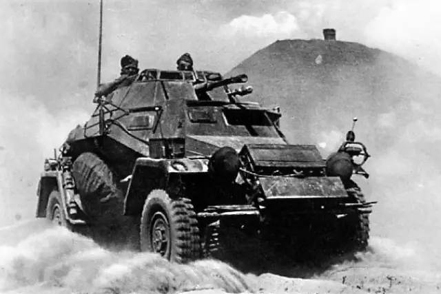 Sd.Kfz.222(特种机动车辆222)(轻型装甲侦察车Sd.Kfz.222)(德国) Sd.Kfz.221是一系列轻型侦察车辆中的首款。它由一台89马力的霍希3.8 V8发动机提供动力,在铺装路面上时速可达50英里(80公里/小时),越野时则为25英里(40公里/小时)。其正面装甲厚度为14.5毫米,其他部位均为5毫米。最初的221型配备一挺机枪,乘员为两人,即驾驶员和炮手。经过大幅改进的222型乘员为三人,包括车长、炮手和驾驶员。222型的主要武器是安装在炮塔内的一门2厘米KwK 30 L/55自动加农炮,主炮左侧还同轴安装了一挺MG34机枪。到1943年,Kwk 30火炮已升级为炮管更长的Kwk 38,发射相同的2厘米(20毫米)弹药。炮塔顶部是敞开的(无装甲!),但装有网状格栅以防止手榴弹进入。 在游戏中,该载具配备了一门意大利自动炮(布雷达35),且没有同轴机枪。我未找到任何222型装甲车配备这种意大利自动炮的相关信息,但也无法对此进行反驳。