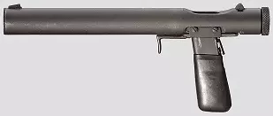 威尔洛德(威尔洛德Mk I)(英国) 由休·里夫斯少校在韦林花园城附近的跨军种研究局设计。据称最初的Mk II型,使用.32自动手枪弹(下图左插图)是最早制造的型号,