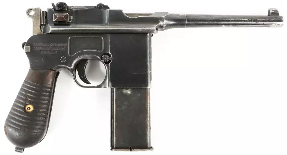 毛瑟M712(M712 Schnellfeuer“速射型”)(德国) M712是德国C96手枪的可选射击模式(半自动和全自动)版本。C96的生产时间为1896年至1937年,使用位于扳机前方的内置10发盒式弹匣供弹,需通过弹夹条装填。显然,M712存在使用10发和20发可拆卸盒式弹匣的版本。M712和C96均发射高初速的7.63×25毫米毛瑟弹药,且M712在二战期间被德国国防军采用,因此在二战中,具有可选射击模式的M712比老式半自动C96参与了更多战斗。 在游戏中,毛瑟M712使用20发可拆卸盒式弹匣供弹,并且确实拥有较高的射速。 (手枪)待续