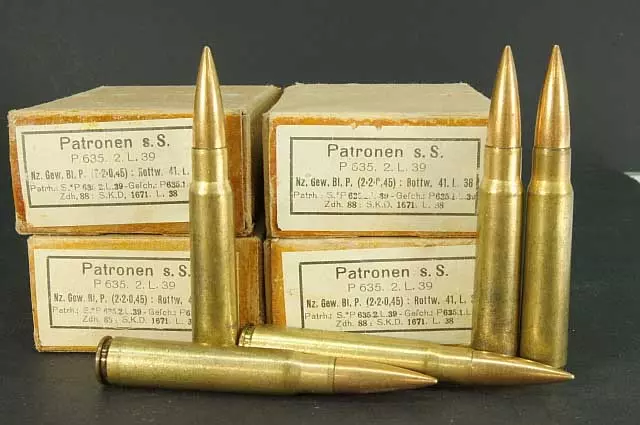 7.92毫米×57毫米毛瑟弹(8毫米×57毫米IS) 该弹药是德国在两次世界大战中使用的主要军用步枪弹。自诞生以来,它一直是世界上最受欢迎的弹药之一。由于一战后《凡尔赛和约》的限制,德国最初被迫在境外生产这种弹药。 在游戏中,98K、Gehwehr 43、FG 42和ZH-29使用此弹药。