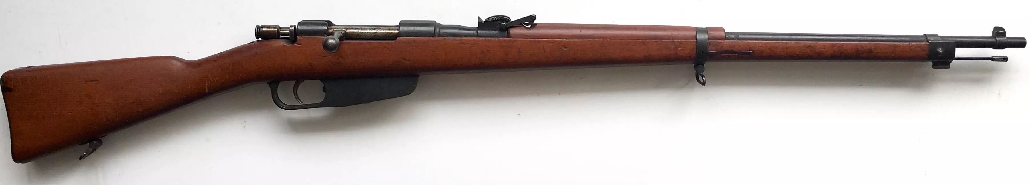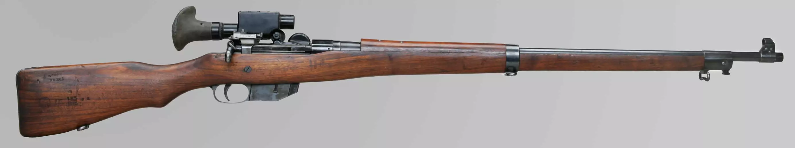 曼利夏M1895(奥地利) 这是一款直拉式栓动步枪,采用5发内置弹仓供弹,通过漏夹装填。最初发射圆头的8毫米×50毫米R弹药,几乎所有该型步枪后来都被重新膛室以适配威力更大的尖头8毫米×56毫米R弹药。曼利夏M1895是奥匈帝国陆军在整个第一次世界大战期间的主要制式步枪。它在第二次世界大战中也有使用,尤其是在罗马尼亚、南斯拉夫、意大利的二线部队、预备役人员甚至游击队中,在德国也有少量使用。 该步枪的狙击型号采用偏移式瞄准镜座,以便仍能从顶部使用漏夹装填。