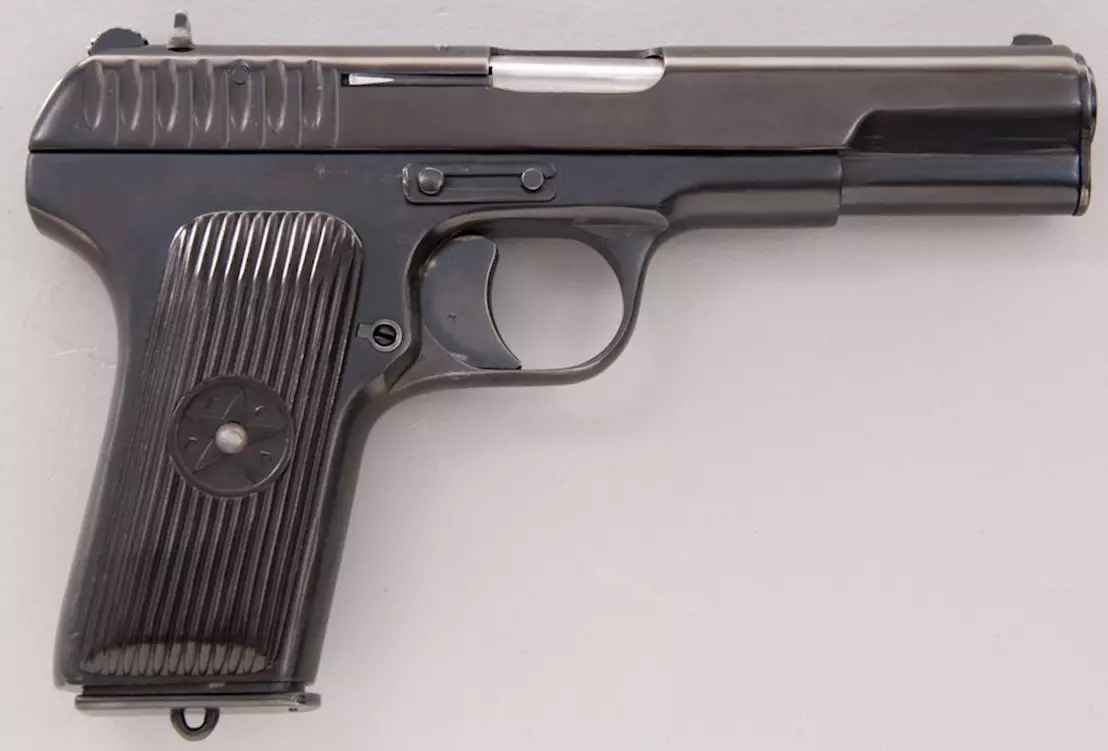 勃朗宁M1911手枪的枪管闭锁系统。不过,托卡列夫融入了自己的独特设计,例如可拆卸的击锤/阻铁组件。TT33发射7.62×25毫米弹药,使用8发可拆卸盒式弹匣供弹。这是一款坚固可靠的手枪,曾在俄罗斯帝国和苏联军队中服役,直至被马卡洛夫手枪取代。德军曾将缴获的TT33手枪配发给自己的部队,因为其7.62毫米毛瑟弹药与该手枪兼容。