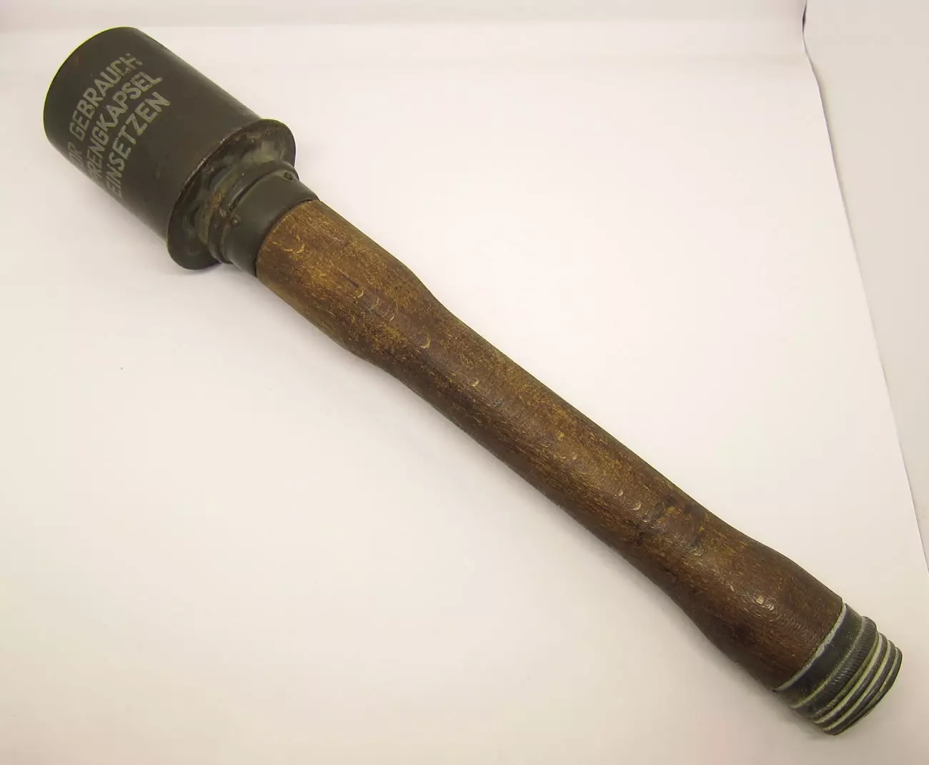 激活摩擦点火器后,会有4.5秒的时间延迟,随后引爆6盎司的TNT炸药。木柄设计让士兵能将手榴弹扔得更远,也能将其插在腰带上携带,但这会减少士兵可携带的手榴弹总数。这种携带方式曾是标准做法,直到战争后期,士兵们被建议改用其他携带方式,因为这样携带的手榴弹在遭遇任何爆炸时都过于暴露,可能会引发殉爆。该手榴弹主要是一种杀伤人员武器,它依靠冲击波发挥作用,由于缺乏破片和足够的爆炸威力,无法对建筑物或装甲车辆造成破坏。这种震荡效果在封闭建筑内和装甲车内部更为显著,通常会造成眩晕效果,而非杀伤。在开阔地带,其效果则较弱。摩擦点火器的激活时间也比盟军手榴弹更长,例如英国的米尔斯炸弹、法国的F1手榴弹以及美国的Mk 2手榴弹。当然,所有这些盟军手榴弹都存在一个共同的问题,那就是它们会持续滚动。