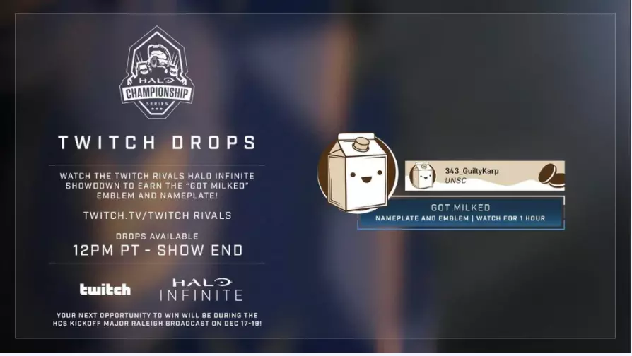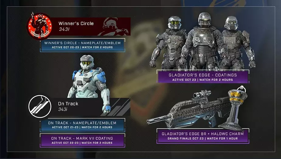 Twitch 《光环:无限》现已加入Twitch掉宝功能。请务必将你的Twitch账户与Halo Waypoint账户进行绑定。这些活动仅在限定时间内开放。 Twitch奖励 获取方式:观看指定Twitch频道