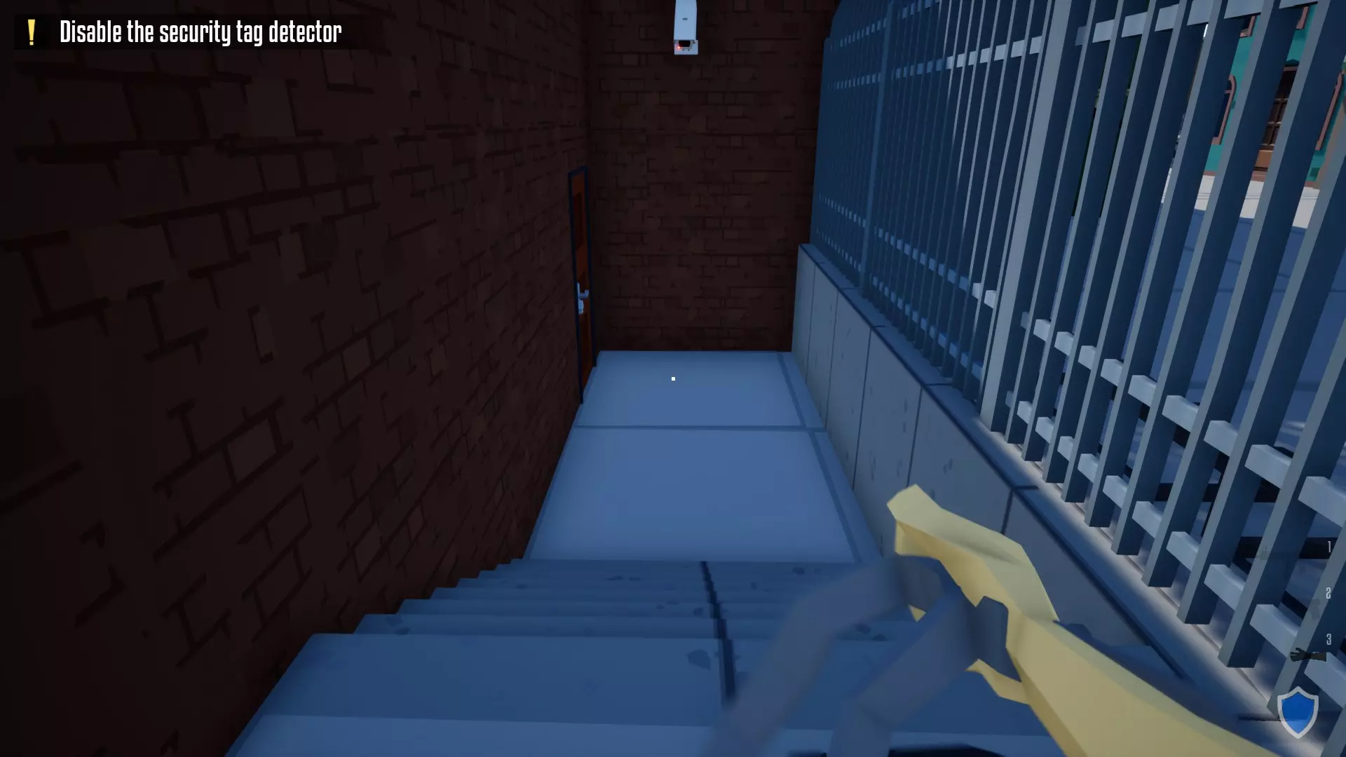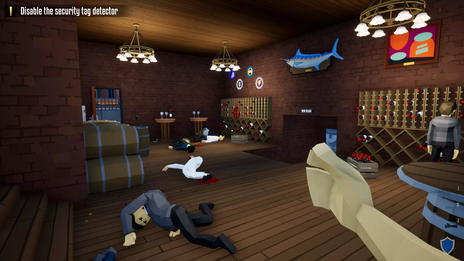 7. 接着击杀左侧的保安,同时捆绑平民。深入商店内部,捆绑平民并击杀另一名保安(以前可以射杀所有平民,但现在这样做会受到惩罚) 8. 打开巨大的铁门