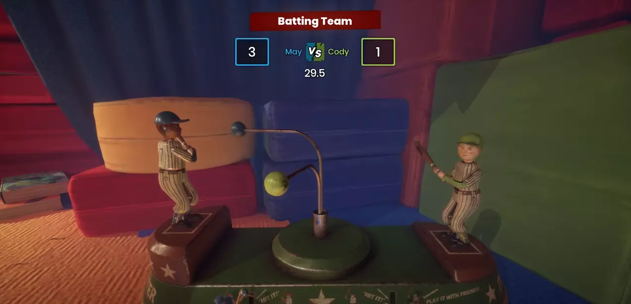 【Break the Bank】 看来是时候兑现了。 区域:跳房子 在经过“蚀刻素描”附近的几个飞行方块后,你会发现一个有许多游戏的房间,最重要的是,那里有一个小猪存钱罐。收集所有四枚硬币,将它们放入存钱罐的背面,然后在它躺在地上时跳起来打碎它。 • 小游戏10:击球队伍 区域:跳房子 在小猪存钱罐所在的同一个房间里,你可以很容易地找到这个小游戏。