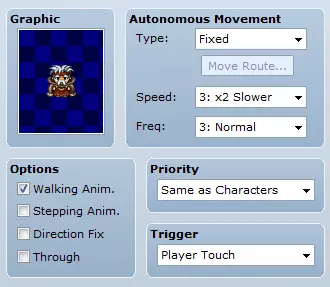 双击图像框内部可更改图像。选择任意你想要的NPC。在本示例中,我从图像列表的角色页面中选择了一个。完成后,你可以设置NPC的行为。你希望NPC只是站在那里?还是四处巡逻?或是看到玩家时走向玩家?在自主移动框中,选择你想要的行为。目前不要使用自定义功能。我们先把游戏制作出来,之后可以再回来调整自定义移动等设置。保持简单! 触发条件。什么会触发NPC对话?是玩家与其碰撞时?还是玩家通过命令键与其互动时?在此框中,暂时选择【动作按钮】或【玩家接触】。同样,为了能完成游戏,我们先保持简单设置。任务:条件设置 现在我们来创建任务。首先在内容框中为NPC添加指令。在这种情况下,我们希望NPC: 1. 玩家一互动就与其对话。 2. 如果玩家没有任务,则给予玩家一个任务。 3. 如果玩家已接取任务,则告诉玩家离开。