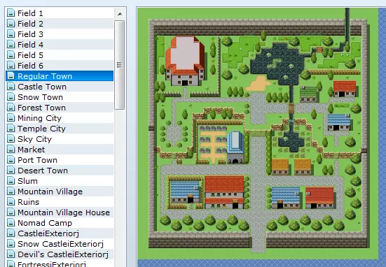 地图编辑 作为新手,RPG制作大师的设计初衷就是让你能直接上手制作游戏。为此,它提供了可直接使用的预制地图。我强烈建议从预制地图开始,然后根据你的需求进行自定义修改。这样可以节省宝贵的时间,让你能专注于学习如何制作游戏。