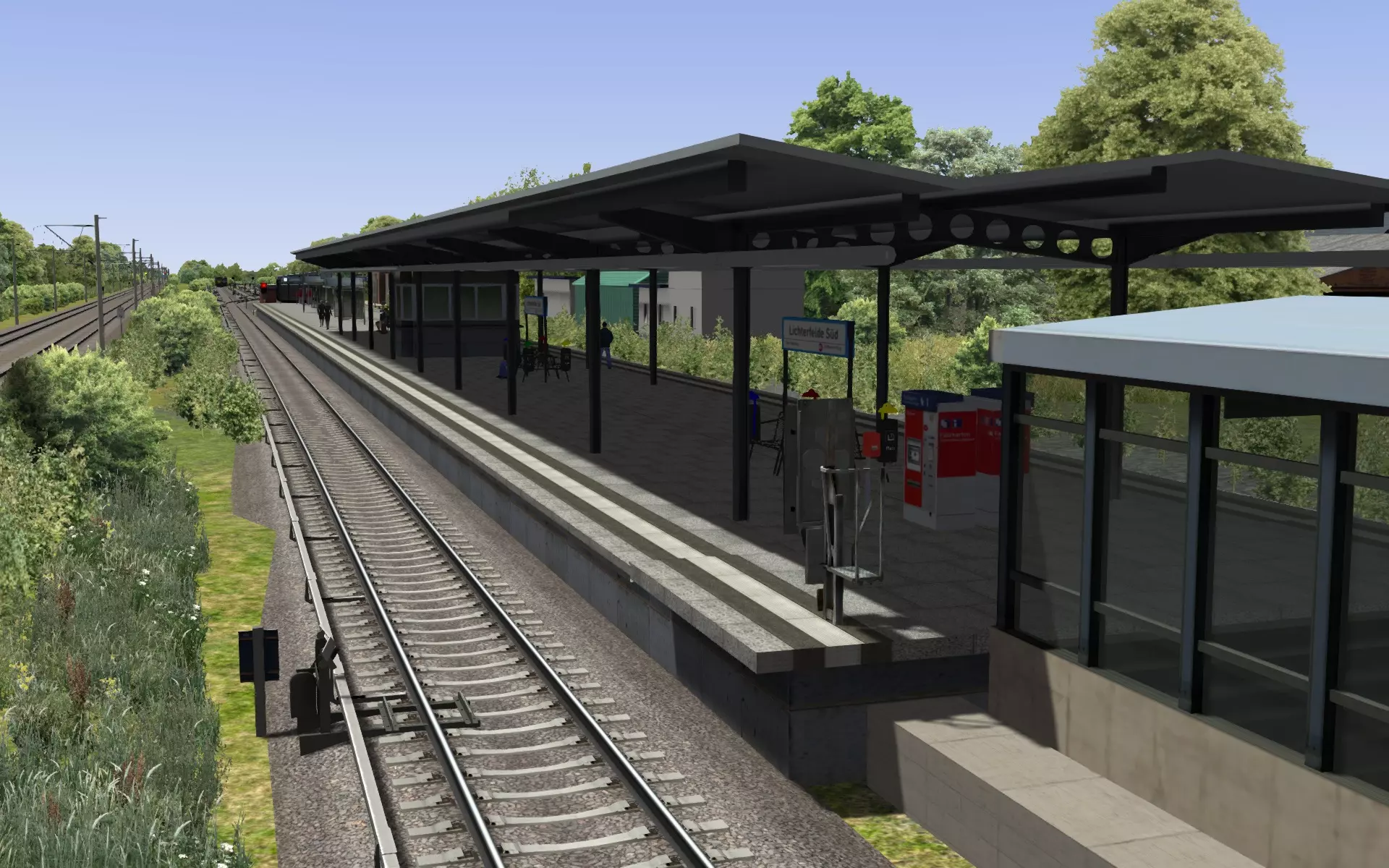 包含卡尔斯鲁厄附近约12公里的有轨电车路线。你需要为其设置自己的自由漫游或场景,或者使用创意工坊中的【S2卡尔斯鲁厄 - 施波克】路线。有轨电车轨道大部分为双线,部分为单线。有一段会与铁路线平行运行,甚至还有一个供电车掉头的环形折返线。全程无信号灯和速度限制,默认限速为40公里/小时。大多数地方可以开得更快,但建议在道岔处减速。我认为这条路线不算特别有趣,但有轨电车轨道是个不错的额外内容,建议在促销时入手。曼海姆-卡尔斯鲁厄路线包含在《模拟火车2019》的发行版本中,也包含在英国版、德国版和美国版的套装里。 《模拟火车2019》基础游戏发行版 《模拟火车2019》英国版 《模拟火车2019》美国版 《模拟火车2019》德国版 这些版本现在无法在Steam上直接购买,但激活密钥有时会在其他网站上出售。 S2卡尔斯鲁厄-施波克(路线,免费软件) 创意工坊中有一个针对曼海姆-卡尔斯鲁厄路线附带的电车轨道的免费扩展。它增加了大量额外轨道、改进的速度限制、信号系统、快速驾驶模式、一些场景优化以及更多内容。 该路线有两个版本。旧版线路可在Steam创意工坊获取,使其正常运行的唯一付费内容为曼海姆-卡尔斯鲁厄线路。除少数道岔和折返环外,没有街道运行场景。同一作者的新版线路可在相关论坛获取。其运行需要以下内容:曼海姆-卡尔斯鲁厄、法兰克福高速铁路、伦敦滑铁卢至朴茨茅斯、法兰克福地铁2号线、士兵峰会(开发者认为可能不需要)、曼海姆-卡尔斯鲁厄线路的Trainworks升级包(推荐但非必需)。以下内容均在Steam平台上,除了Trainworks升级包为免费下载外。 此版本路线在撰写时仍处于开发中,但包含街道运行内容。 S25:柏林中心(路线与车辆,付费内容)
