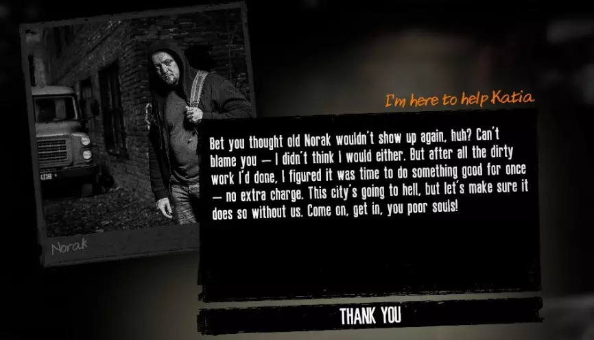 忘却庆典:携手逃亡 - 卡佳选择等待第二次逃离城市的机会——当那一刻来临时,她身边有人陪伴着一同离开。 这两个成就可以一起完成。 在第20天,同一个人会来找我们并询问我们想做什么,但这次我们必须选择第一个选项:
