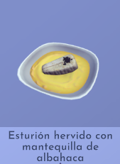 食材:1份白鲟,1份罗勒,1份柠檬,1份黄油 能量:4961 售价:2200 星级:4