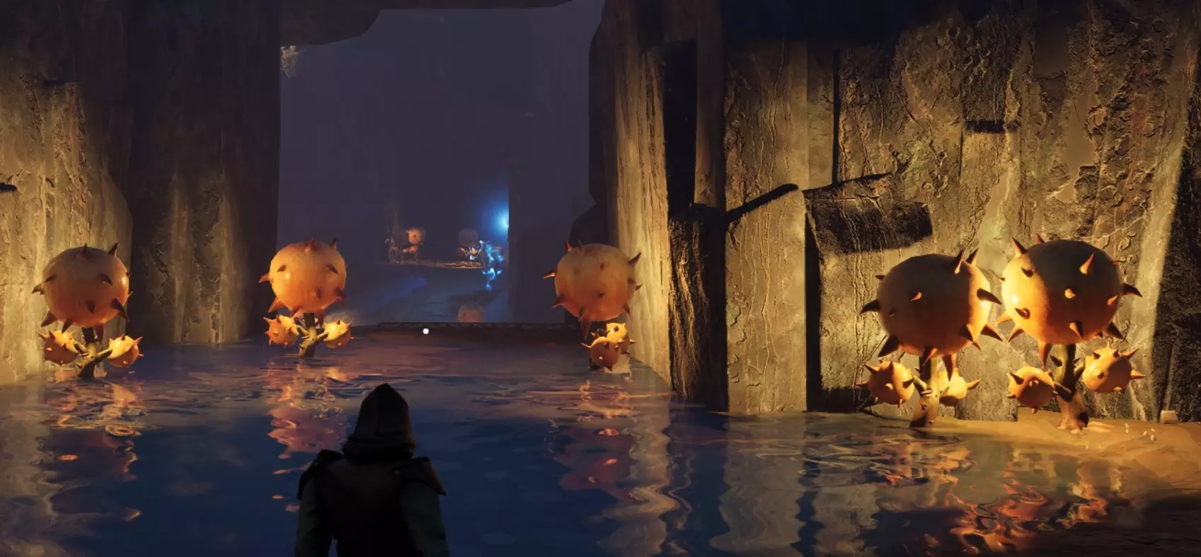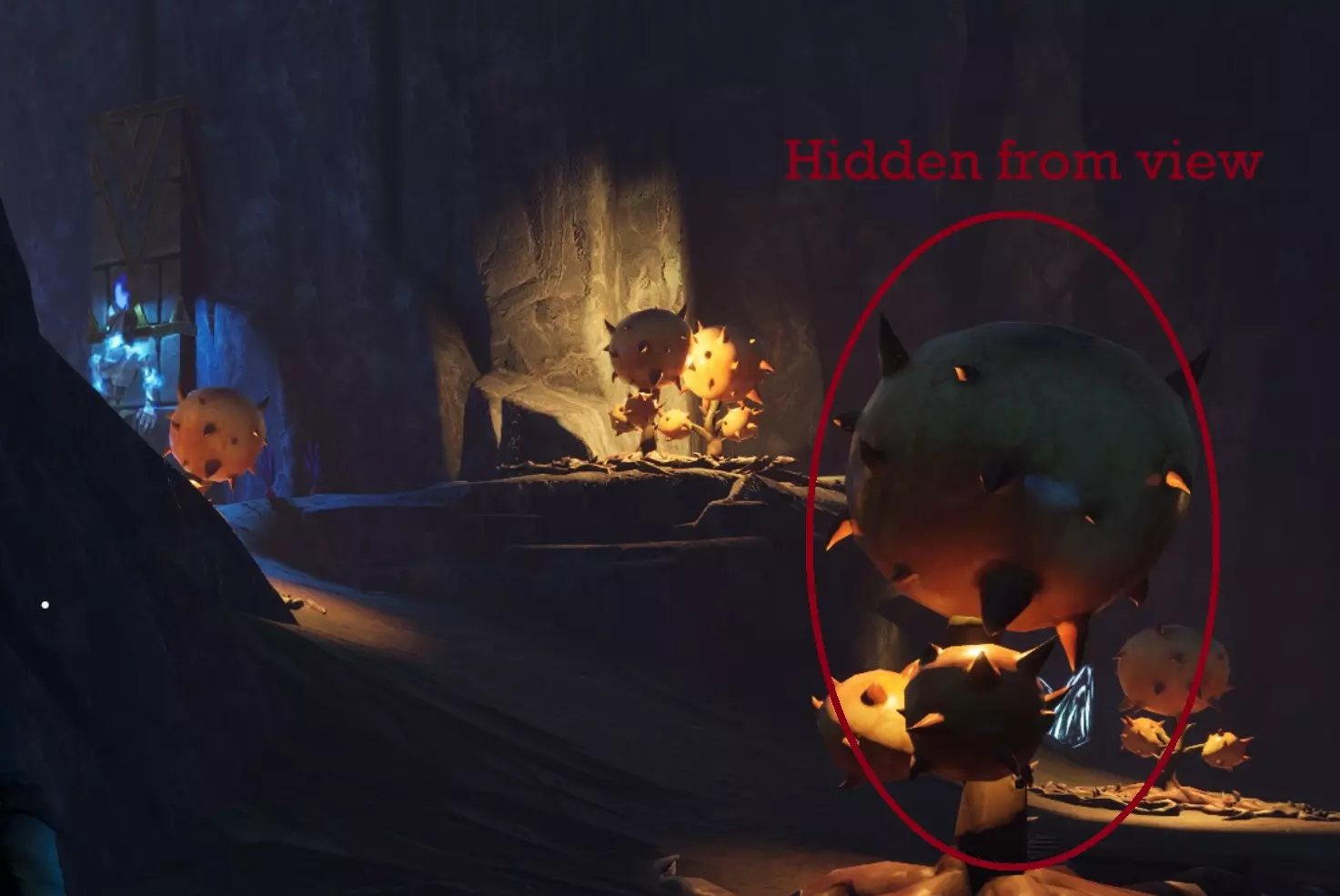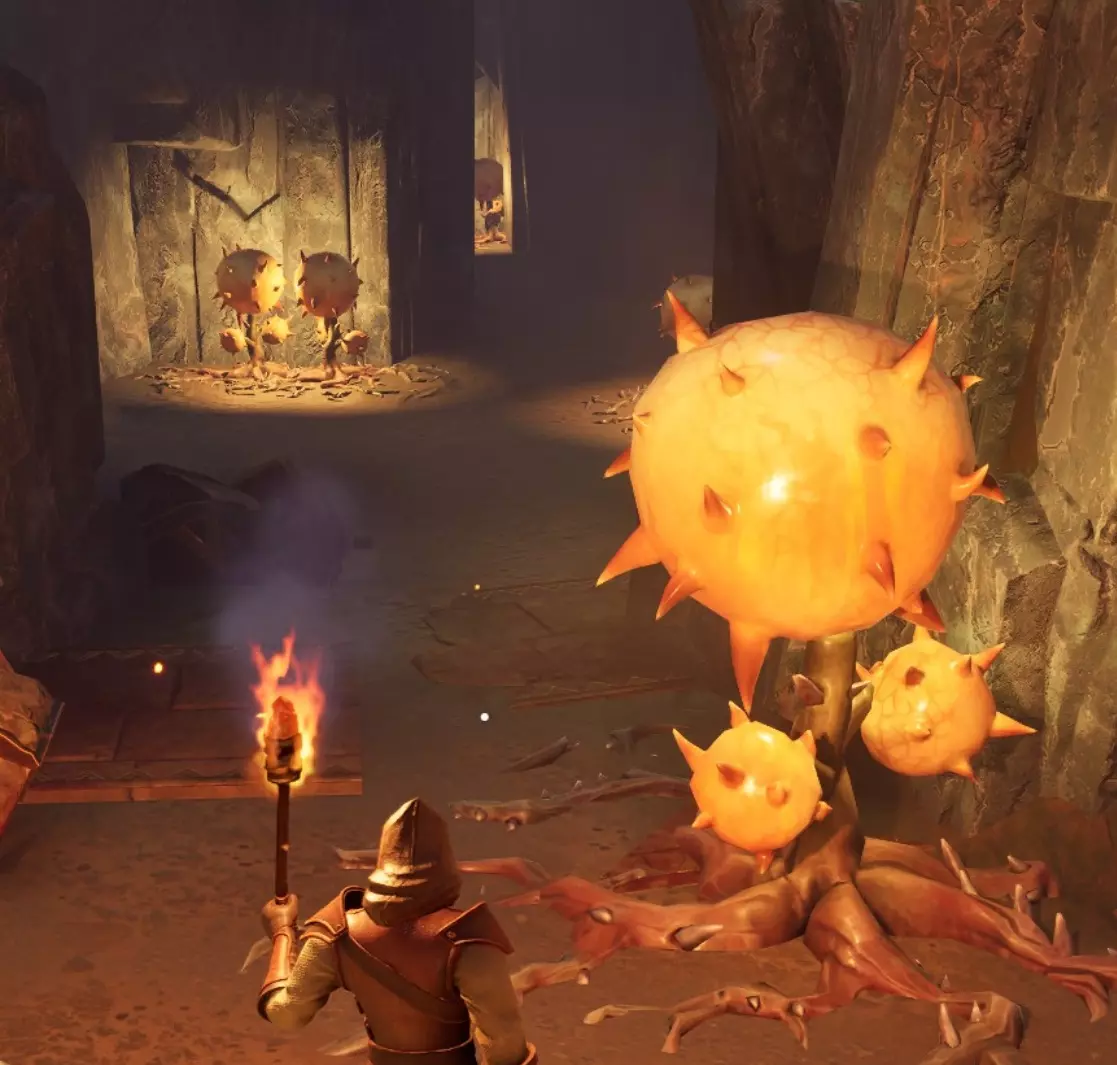 这片区域开阔成一个巨大的洞穴,里面有更多会爆炸的植物。