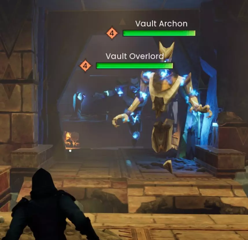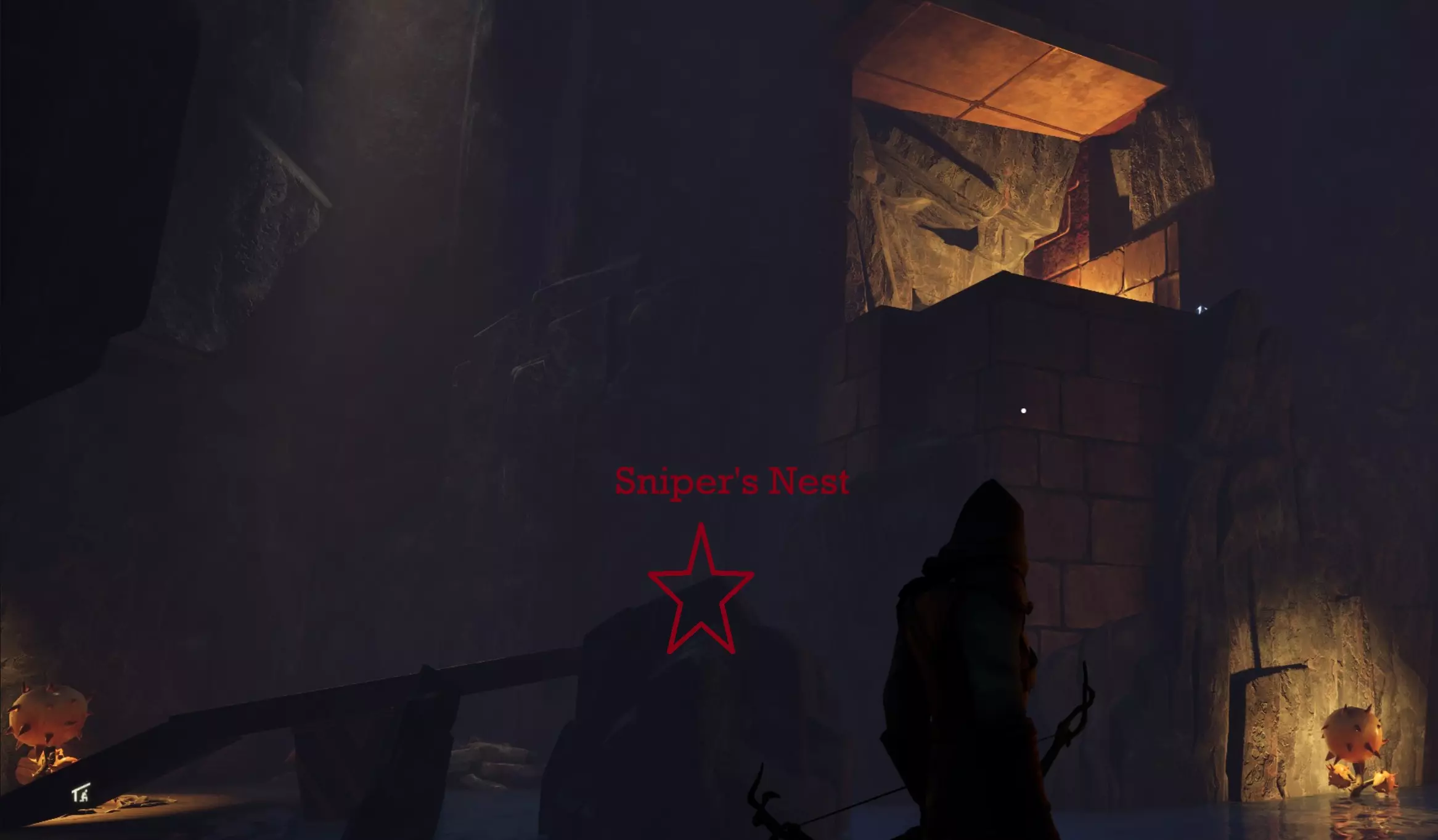 从这里你可以建造一个【磁石】,清空你的背包和快捷栏,然后跑进营地激活神龛。显然这会引来所有敌人的仇恨,但即使死亡也没关系,因为你不会损失任何东西,也不会留下复活石。只需传送回来,拿起你的装备然后进入地窖。 强行进入: 消灭所有敌人。激活神龛并进入地窖。 神龛位置: 过桥后你看到的第一个建筑上有一个狙击手。第一个神龛也在这里,第二个神龛位于左侧高处的露头处。转身你会看到另外两个神龛位于营地深处的柱子后面。通常有一个法师在高处露头附近巡逻,如果你打算悄悄潜入,请注意这一点。