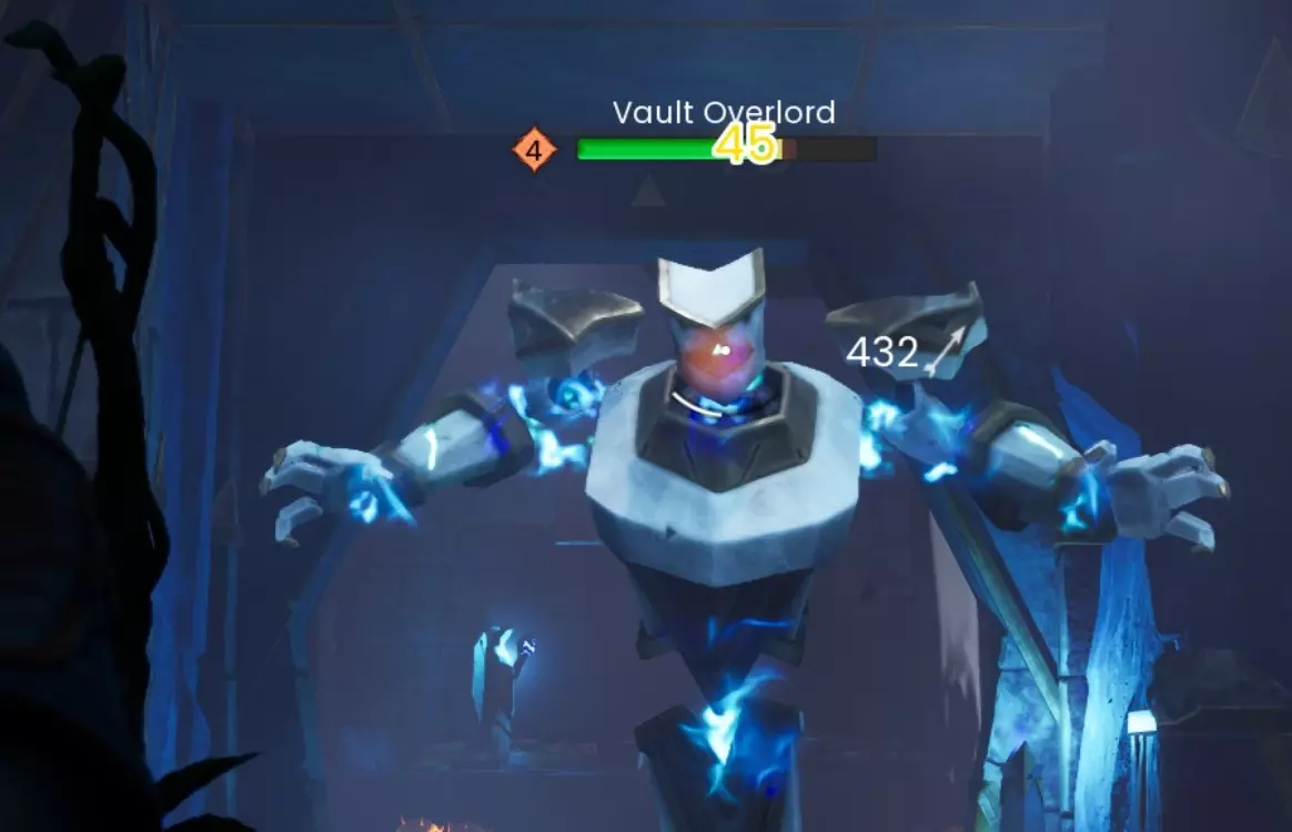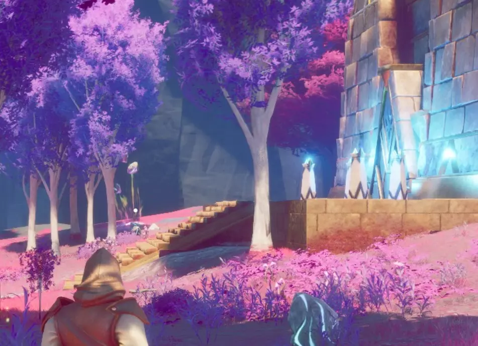 将相机向左上方转动,你会看到一个开口。使用【风步】法术跳上去,就能找到另一个【保险库核心】、一个宝箱、锡矿节点和一株爆炸植物。
