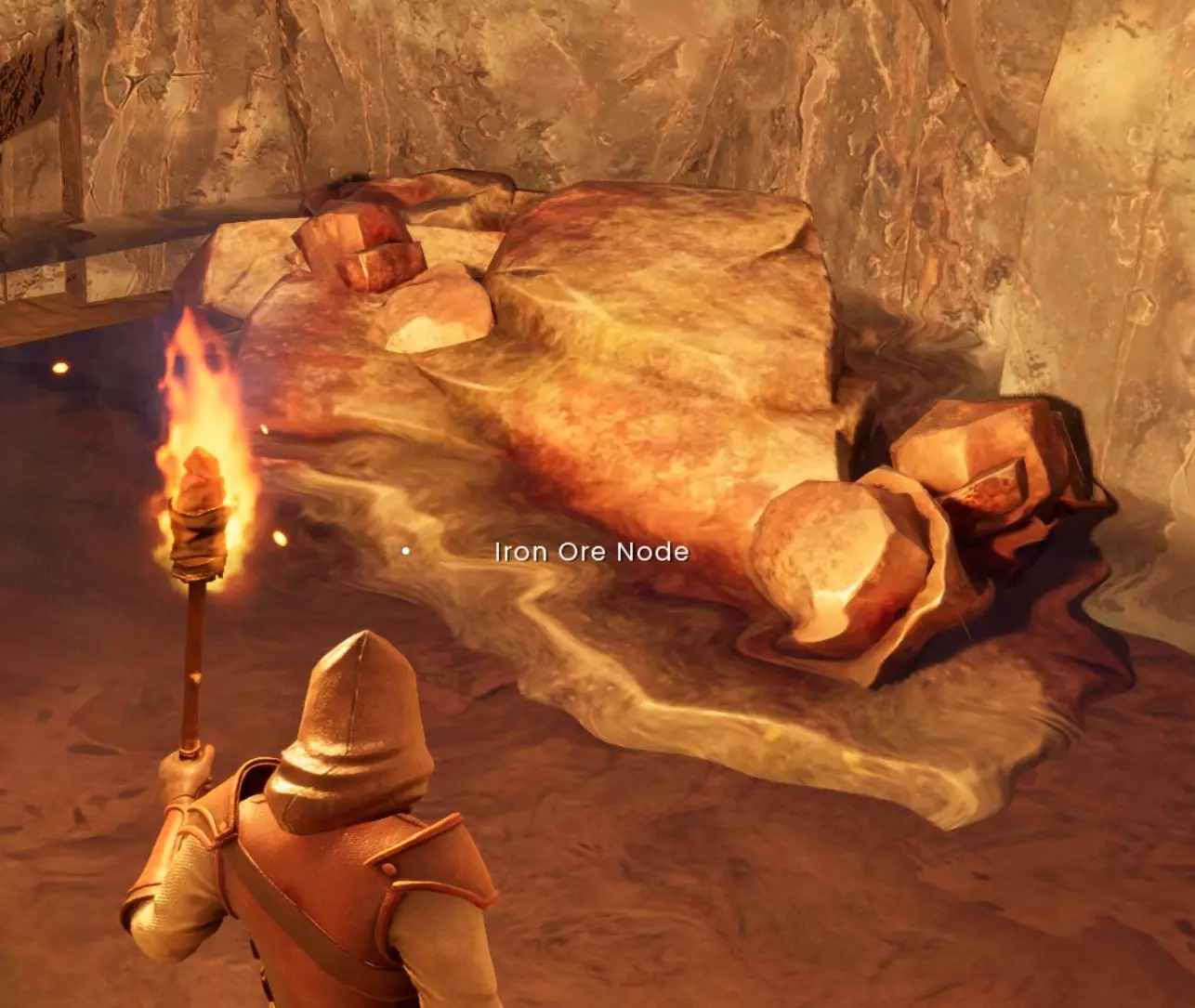 队伍左侧还有一个哨兵。进入瀑布并破坏墙壁,即可找到一个铁矿节点。