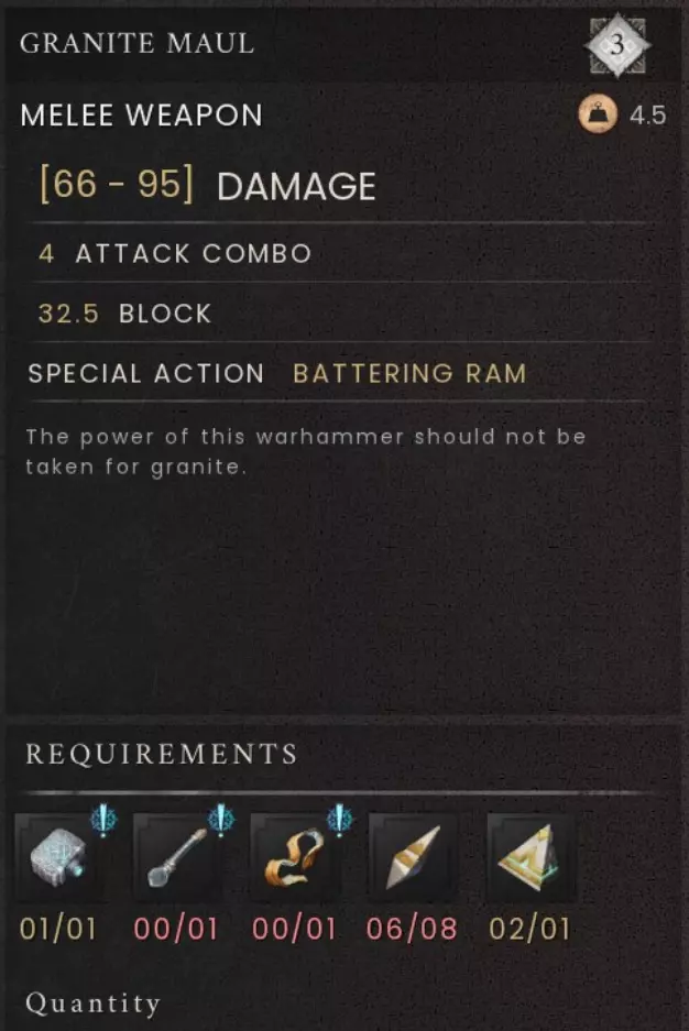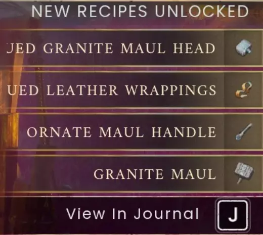 你将获得制作花岗岩巨锤所需的多种组件配方,花岗岩巨锤是一把3级大师级武器。