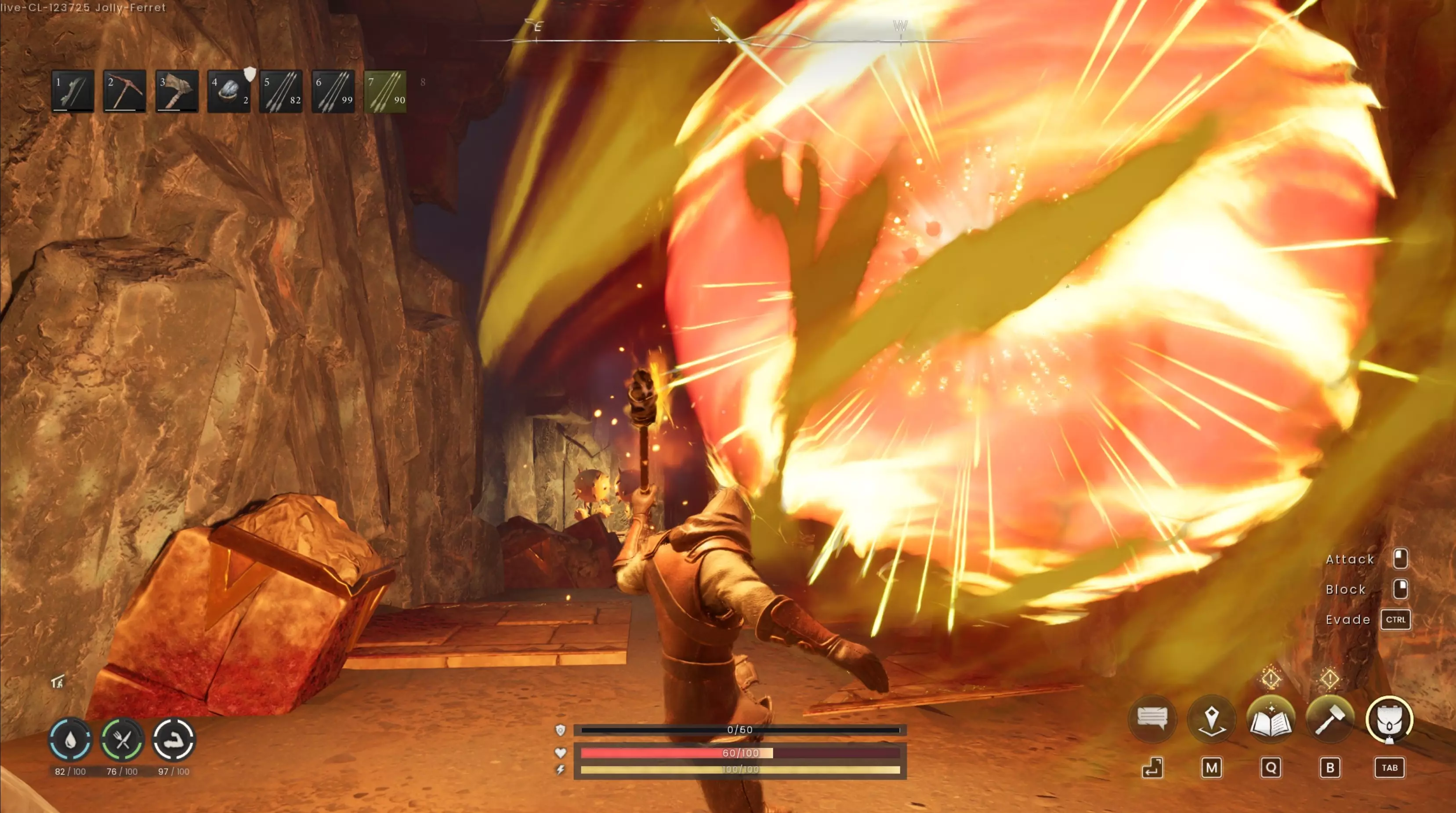 入口左侧的斜坡下方,一面可破坏的墙壁后面有洋葱和一个锡矿石节点。