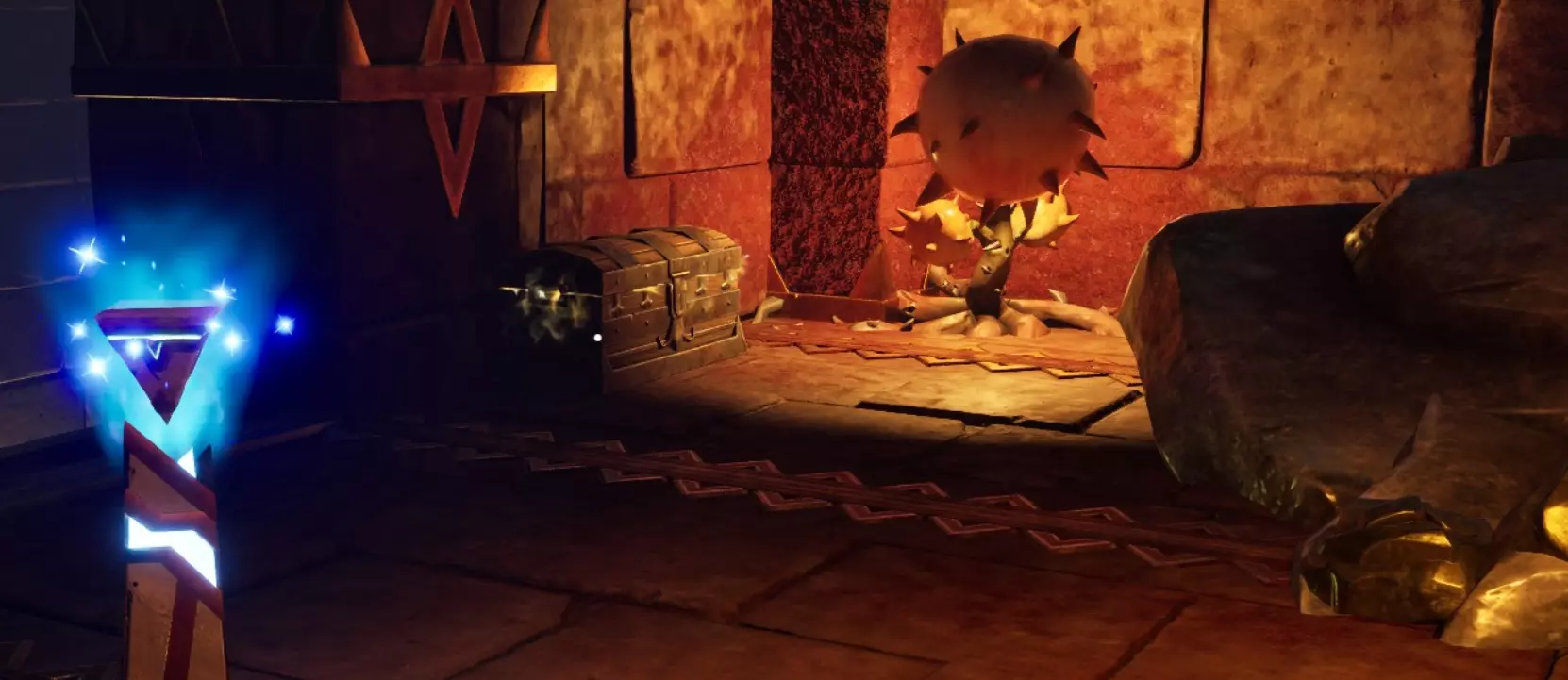 首领房间内有一个【宝库核心】、一个宝箱和一座神龛。在我的游戏流程中,宝箱里有一个【魔法之墓】。触碰神龛可以获得你一直在寻找的物品。返回多里克处即可完成任务。
