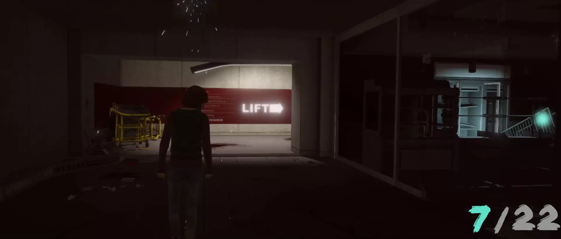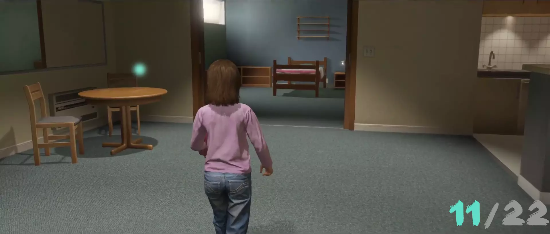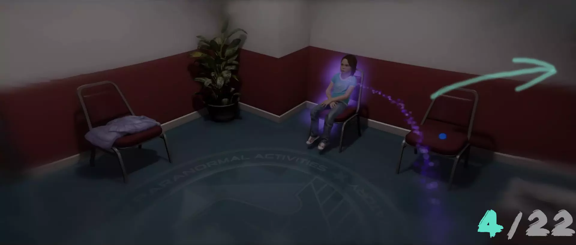 “第一夜”章节。在乔迪的房间里,穿过墙壁。墙壁后的办公室内,角落的地板上有一个奖励。