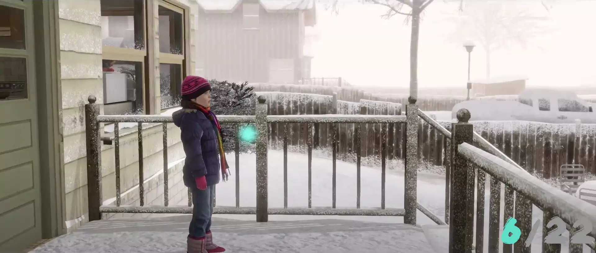 章节“我想象中的朋友……”。奖励位于栅栏处,厨房窗户旁边。