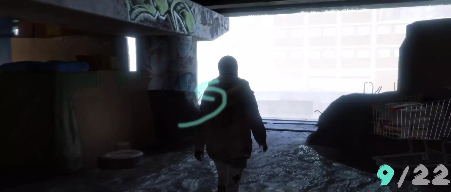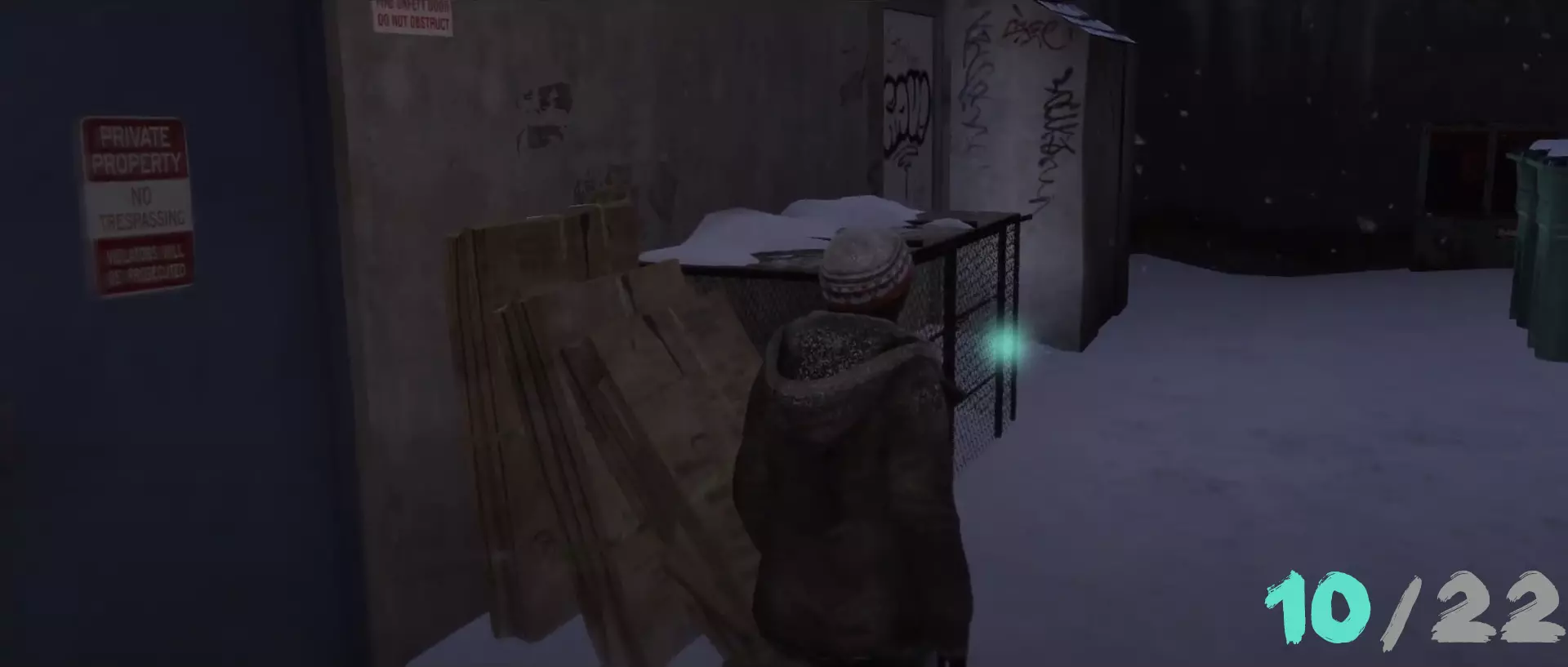 “无家可归”章节。遇到斯坦后,从他的藏身处出来。出口正前方就是第一个奖励(从外部视角看)。