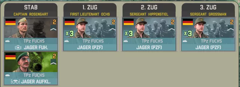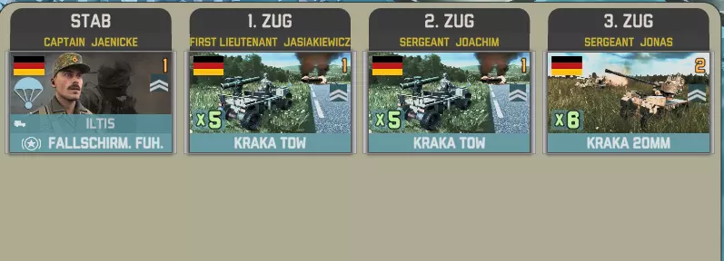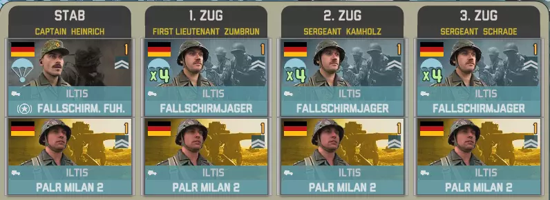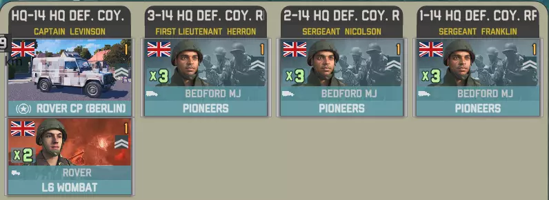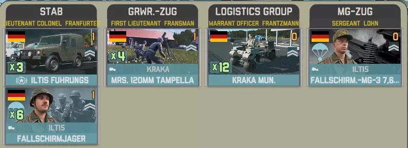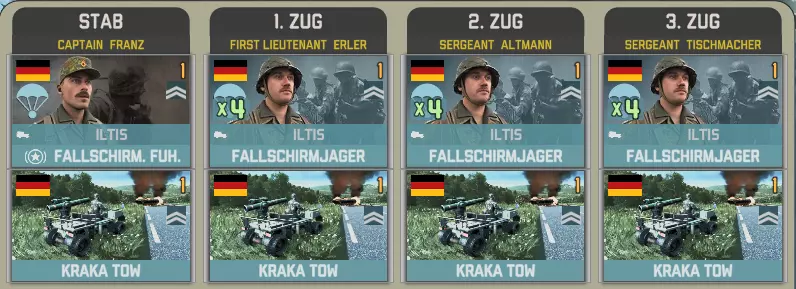 第二个事件中,我们有第26空降旅的四个营,其特色是精锐的空降猎兵步兵,但支援力量相对有限。 前三个营包含一个参谋连: