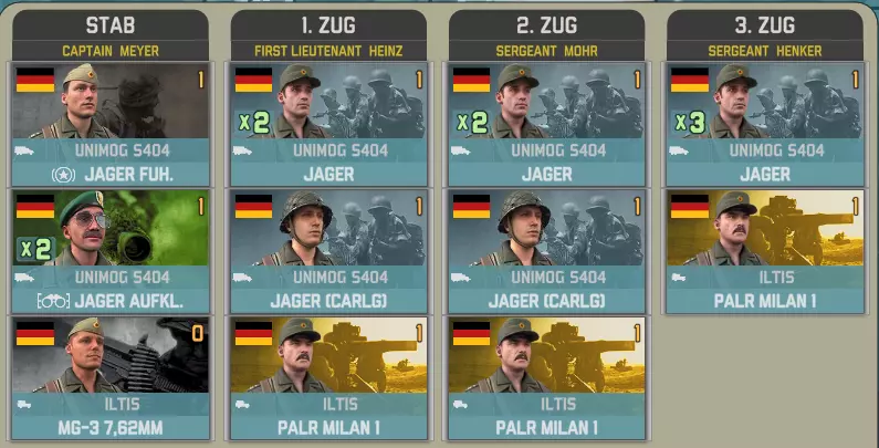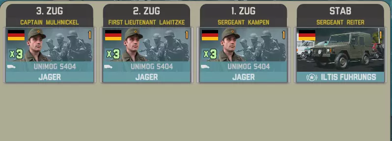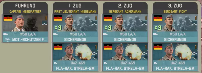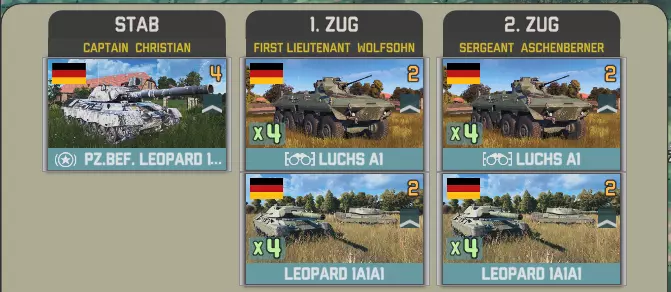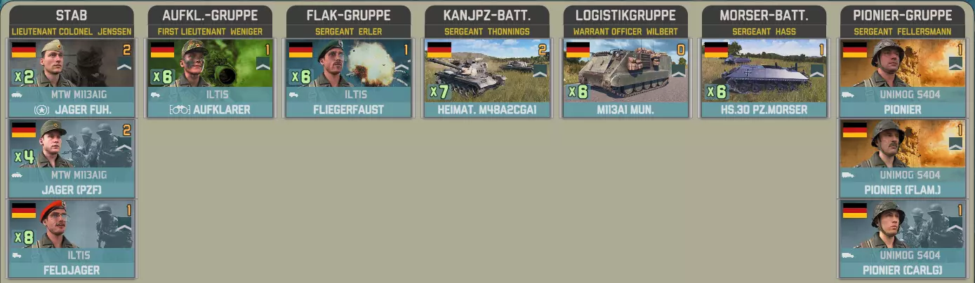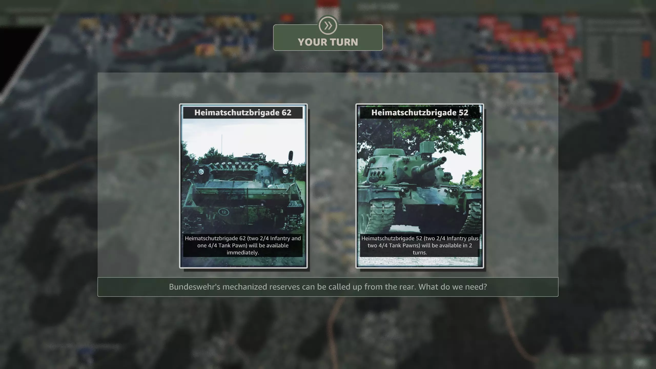 国土防御旅52将在两回合后抵达,配备两个坦克营和一个摩托化步兵营,与上述部队编制相同。该旅还包含一个机械化营,其编制内有一个参谋连。