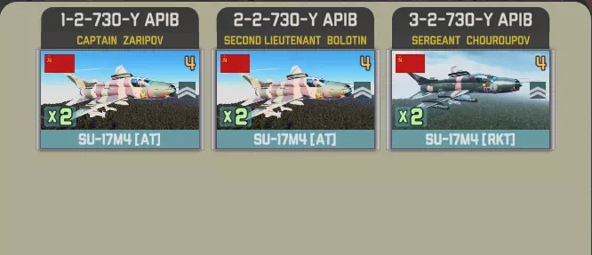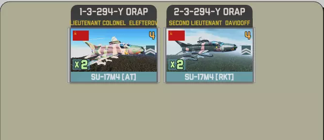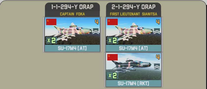 第十回合将开启一项活动,你可以选择获取第294独立侦察航空兵团的16架SU-17M4,或者选择第40战斗机航空团与第8战斗机航空团的共22架SU-22M4和SU-22M4P。 第294独立侦察航空兵团拥有两个中队,每个中队配备4架反坦克型和2架火箭弹型。