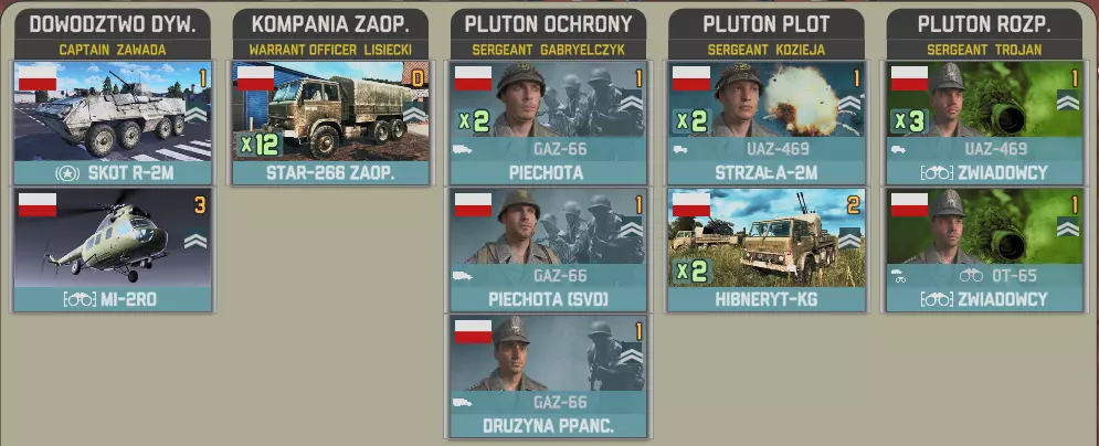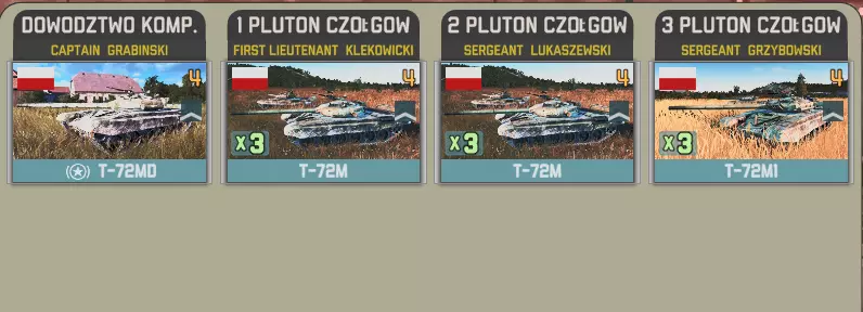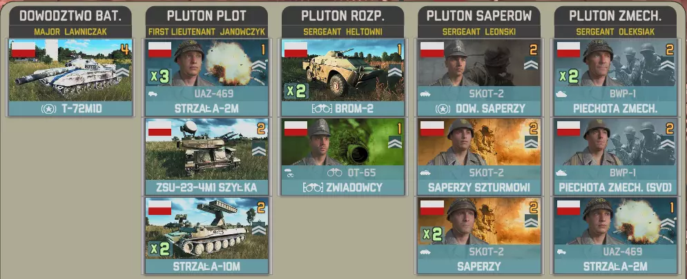 你想要多少波兰部队?一些?还是更多? 波军装甲团是强制增援给你的波兰部队。 该部队包含两到三个T-72坦克营以及一个参谋连,其中一个营没有有机补给,这可能是一个漏洞。