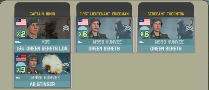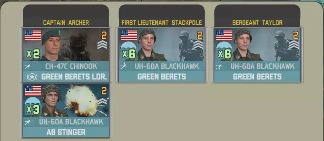 第二回合将提供第1-10特种部队群,其中包含数个连的精英前置部署步兵,这些步兵具备全新的教官特性。此外还有第480战术战斗机中队,以及配属的EA-111“渡鸦”电子战飞机提供支援。 第1-10特种部队群带来了精英步兵,并配备有限的直升机支援。其中EH-60A“快速修复II”直升机尤为突出,它能通过电子干扰和信号情报(SIGINT)为空中力量提供卓越的支援能力。 还有一个配备先进装备的参谋连,但补给有限。