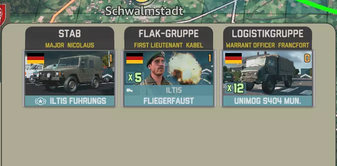 它们在巴特苏登-阿伦多夫生成。该位置便于前往卡塞尔北部的空降着陆区,在那里它们的反坦克能力和补给可以充分发挥作用: