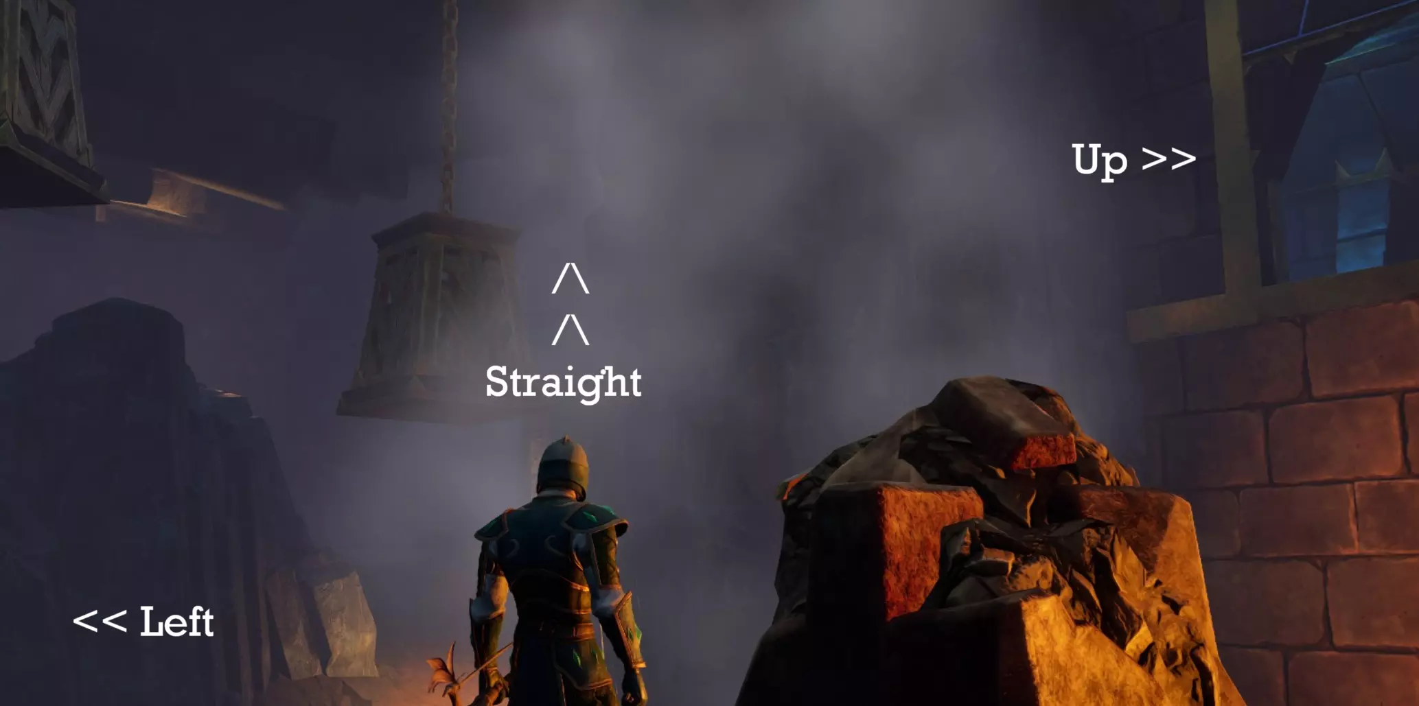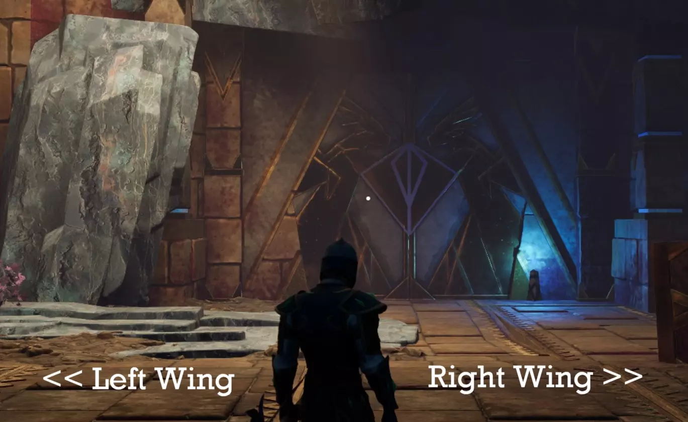 这个地穴由两个区域组成。每个区域的尽头各有一个拉杆,需要拉动两个拉杆才能进入首领战区域。从起点出发,你可以选择向左或向右走。