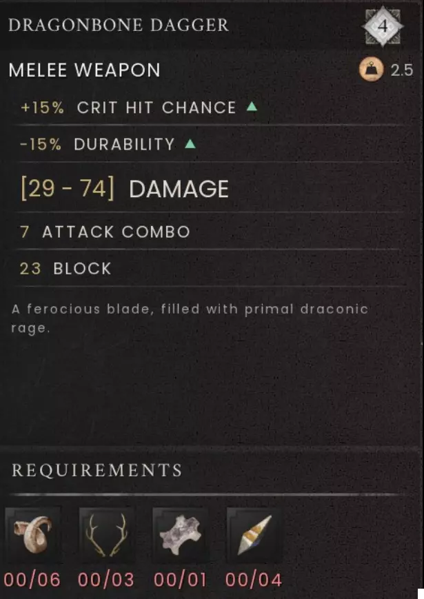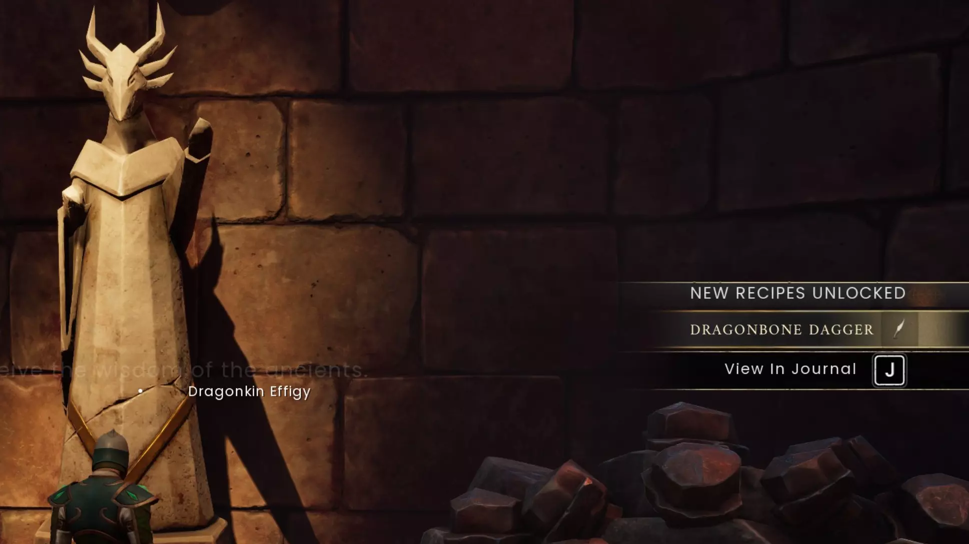 与最后的龙人雕像对话,即可获得龙骨匕首的配方。