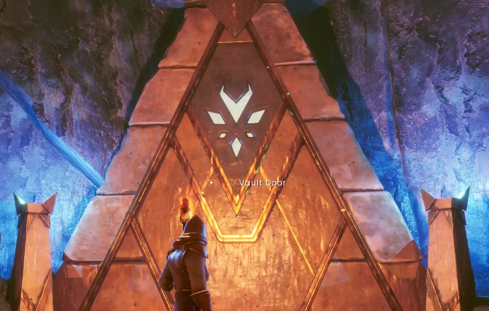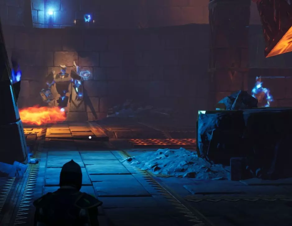 游侠:还记得龙人雕像旁边那面可破坏的墙壁吗?墙壁后面的房间里有一个斜坡,通向一个金属块。如果你吸引敌人的仇恨,然后把它们引到那个金属块那里,它们都会跟着你,并试图与你进行近战。和在宝库左翼与敌人战斗时类似,你会安全无虞,还能获得大量爆头练习的机会。你可能需要猜测瞄准的位置,因为很多时候你的头部会挡住摄像头。