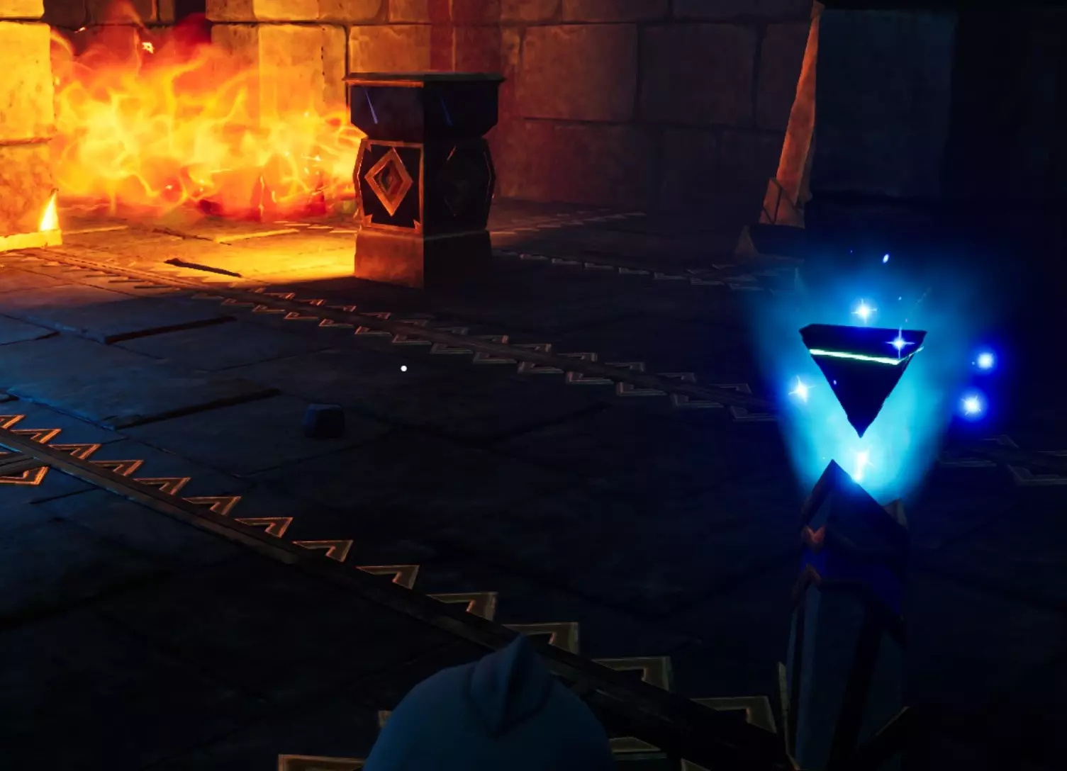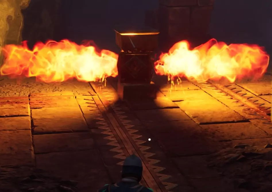 剩下的路会通向二楼,在那里你会看到一个宝箱和两座雕像,雕像后面有一个火焰陷阱。